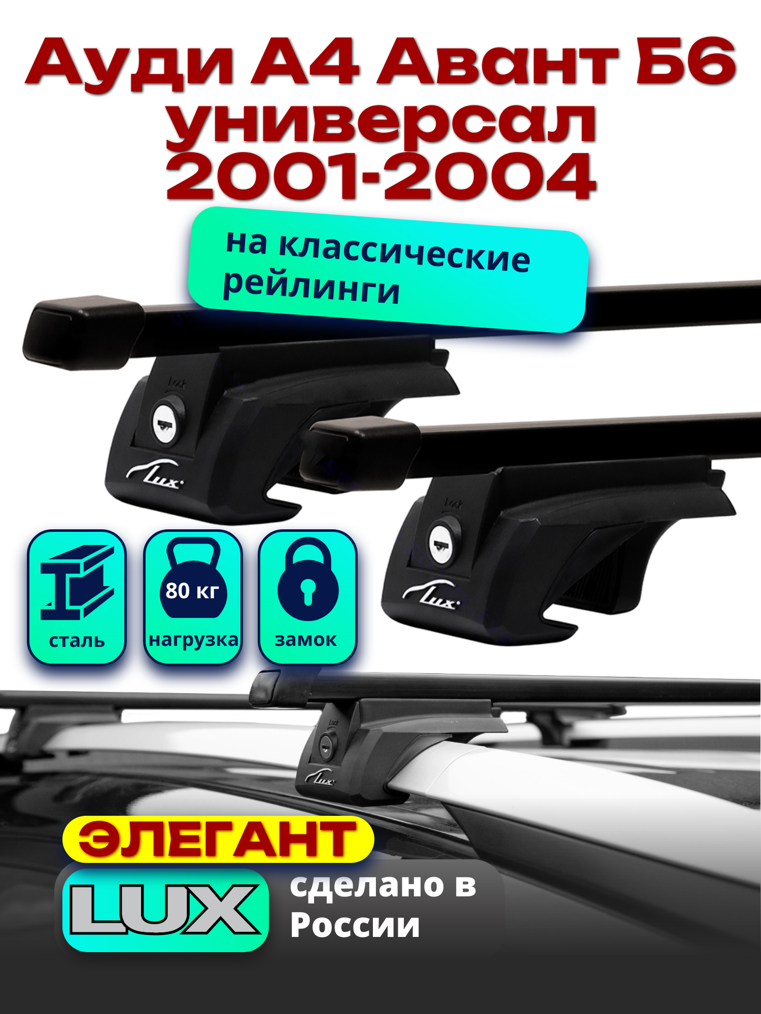 Багажник на крышу LUX элегант с замками дуги аэро-классик 53мм Ауди А4 Авант Б6 универсал 2001-2004, арт:219211