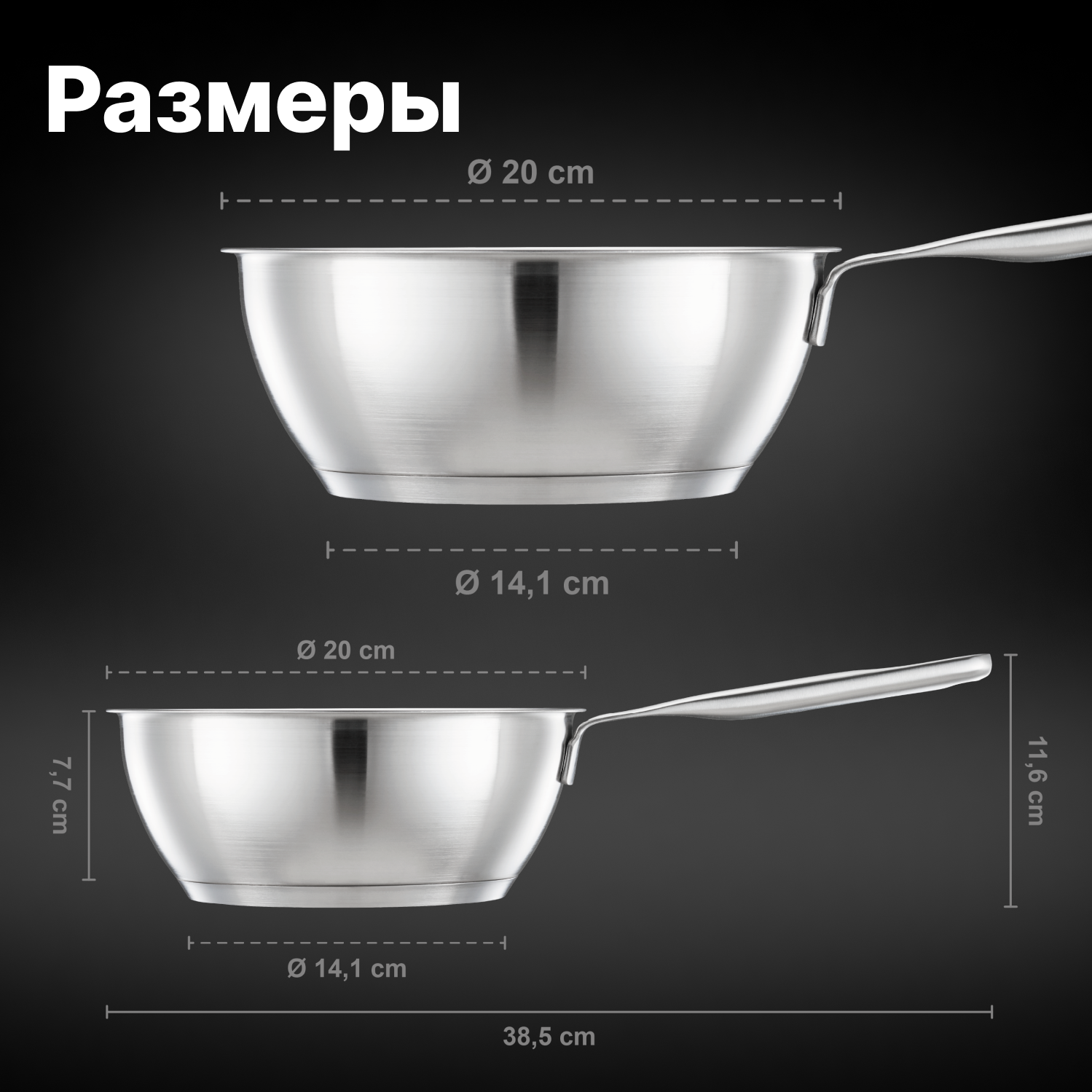 Купить Сотейник из нержавеющей стали, без крышки 2л, 20cм All Steel Fiskars (1064748)