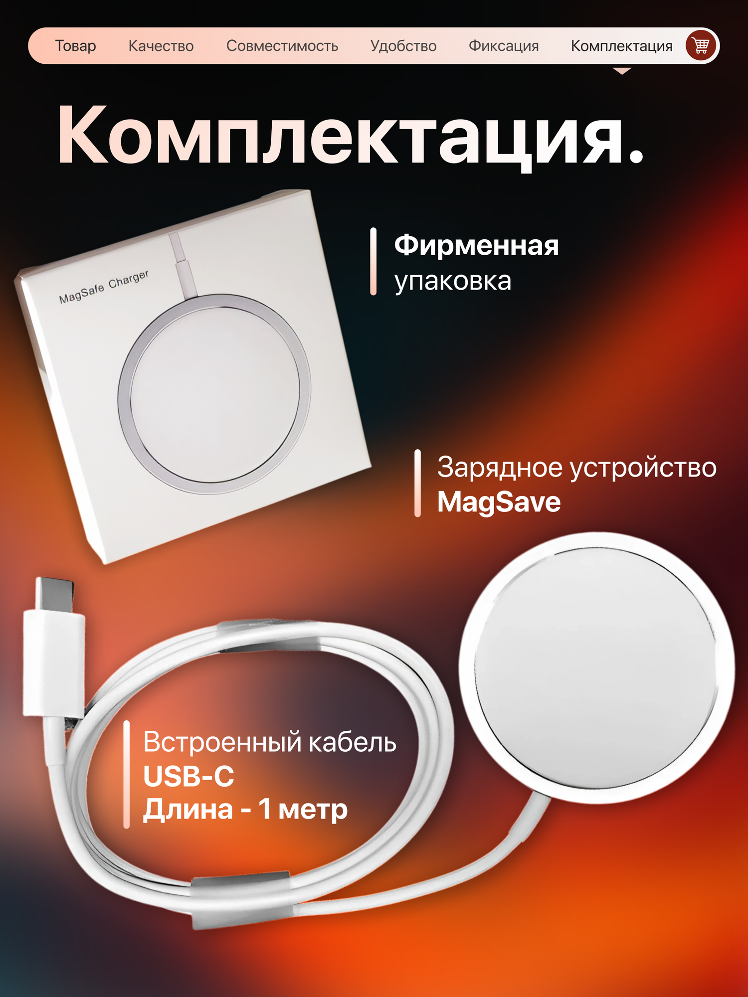 | Особенности | чехол в комплекте / MagSafe / сертификат MFi / магнитная площадка / защита от перегрева |