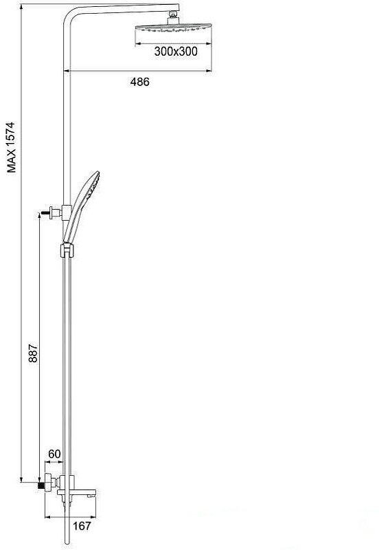 | Дополнительная информация | высота стойки для душа: 1500 мм; длина верхнего душа: 300 мм; ширина верхнего душа: 300 мм |