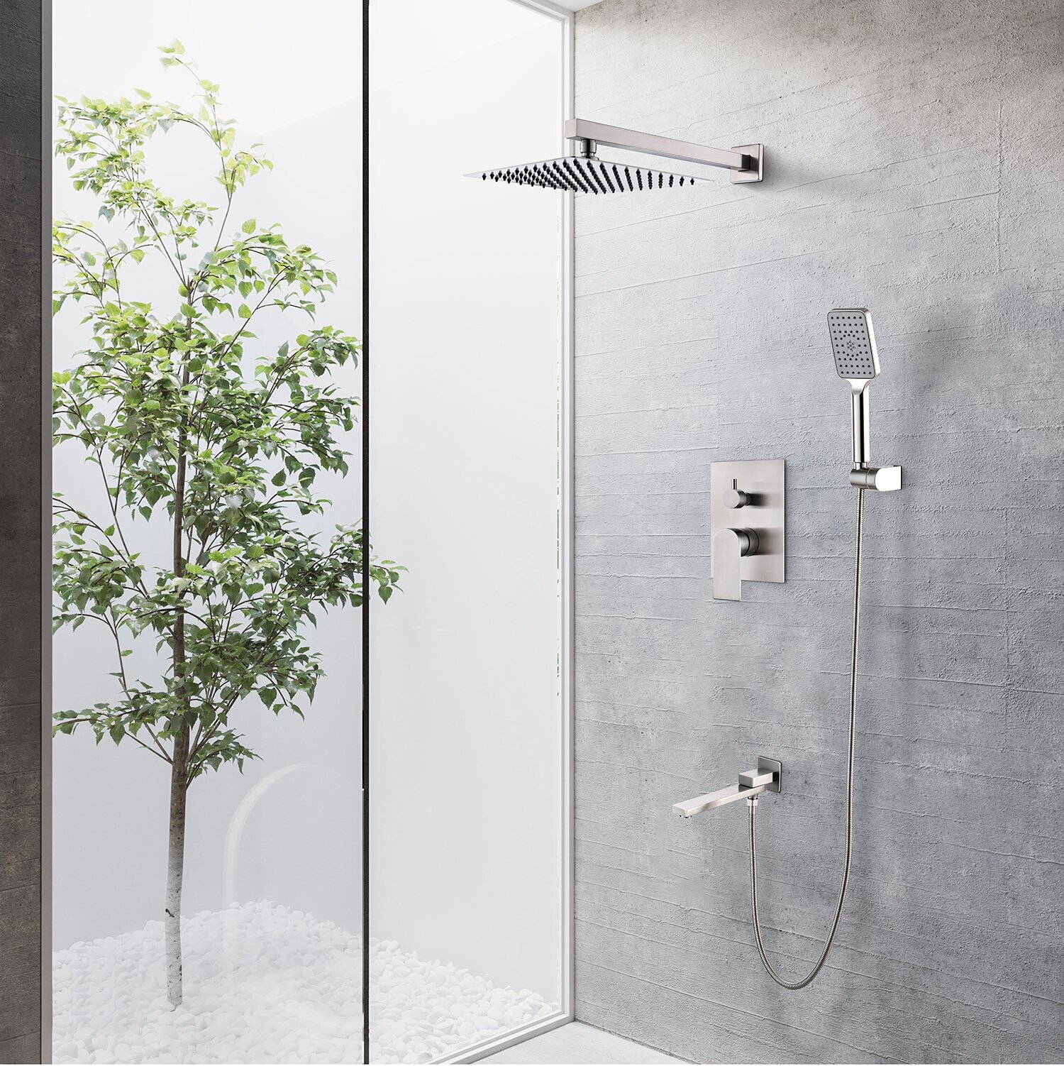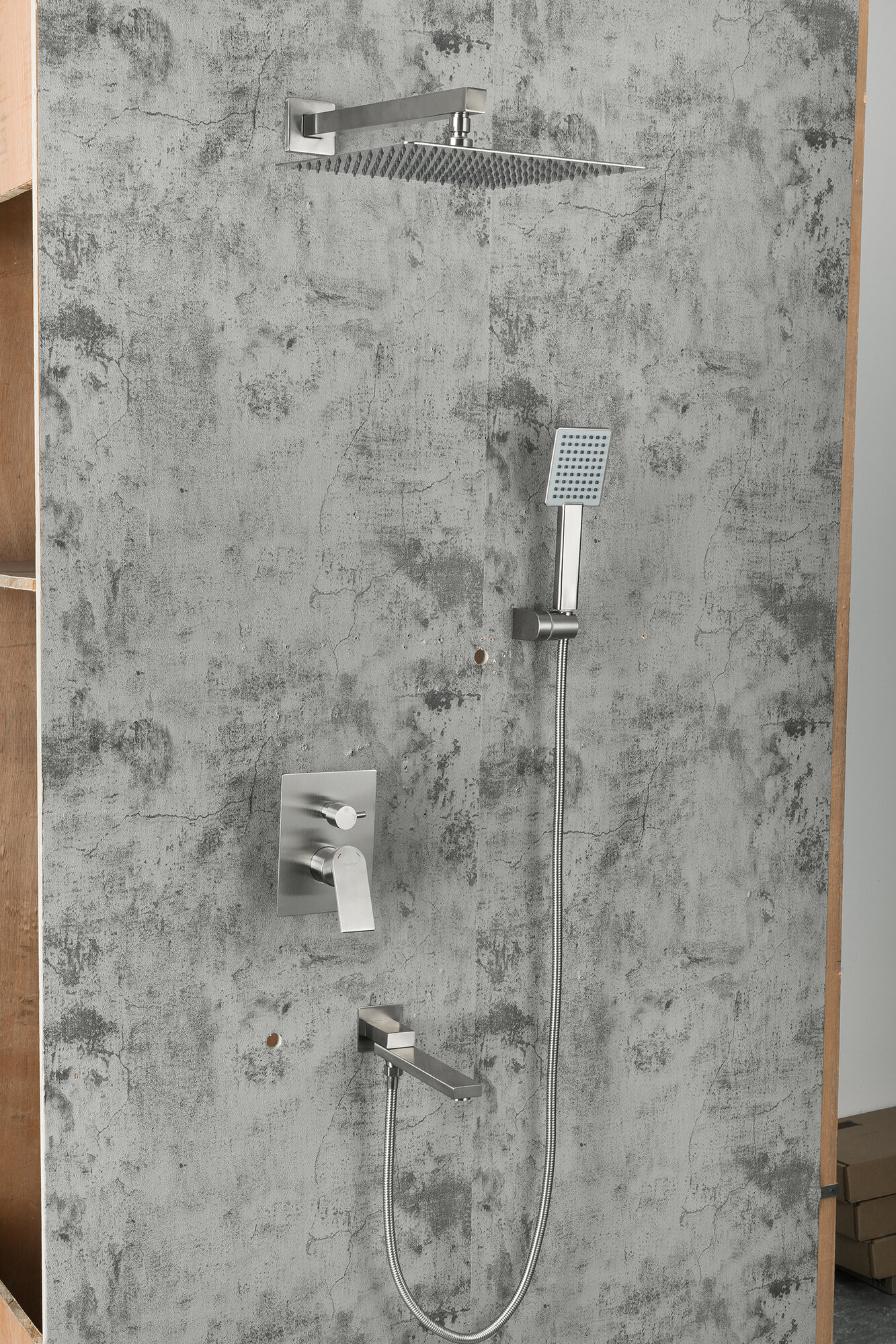 | Комплектация | душевая лейка / шланг для душа / держатель душа / кронштейн для верхнего душа / излив / скрытая монтажная часть |