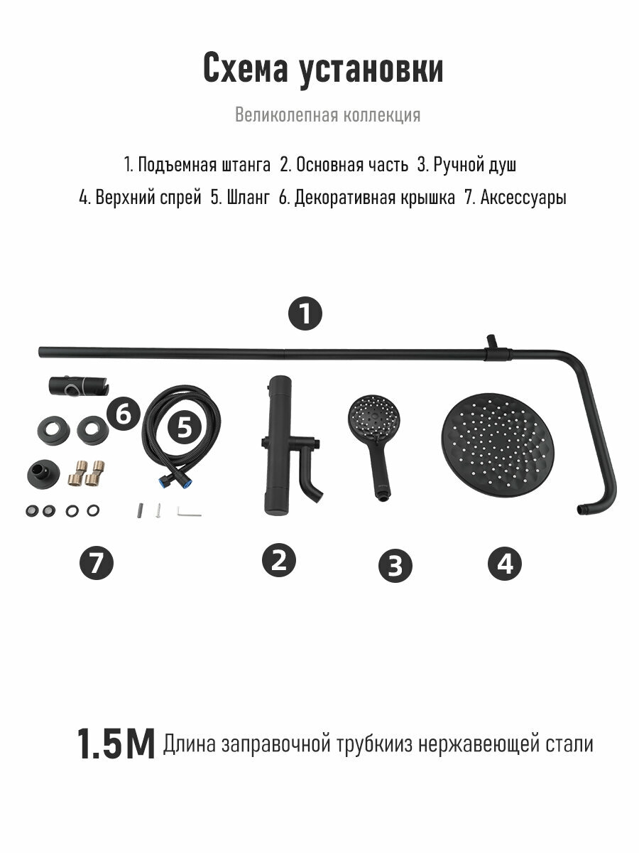 Душевая система с термостатом Gappo G2490-6, латунь, цвет черный интересное: