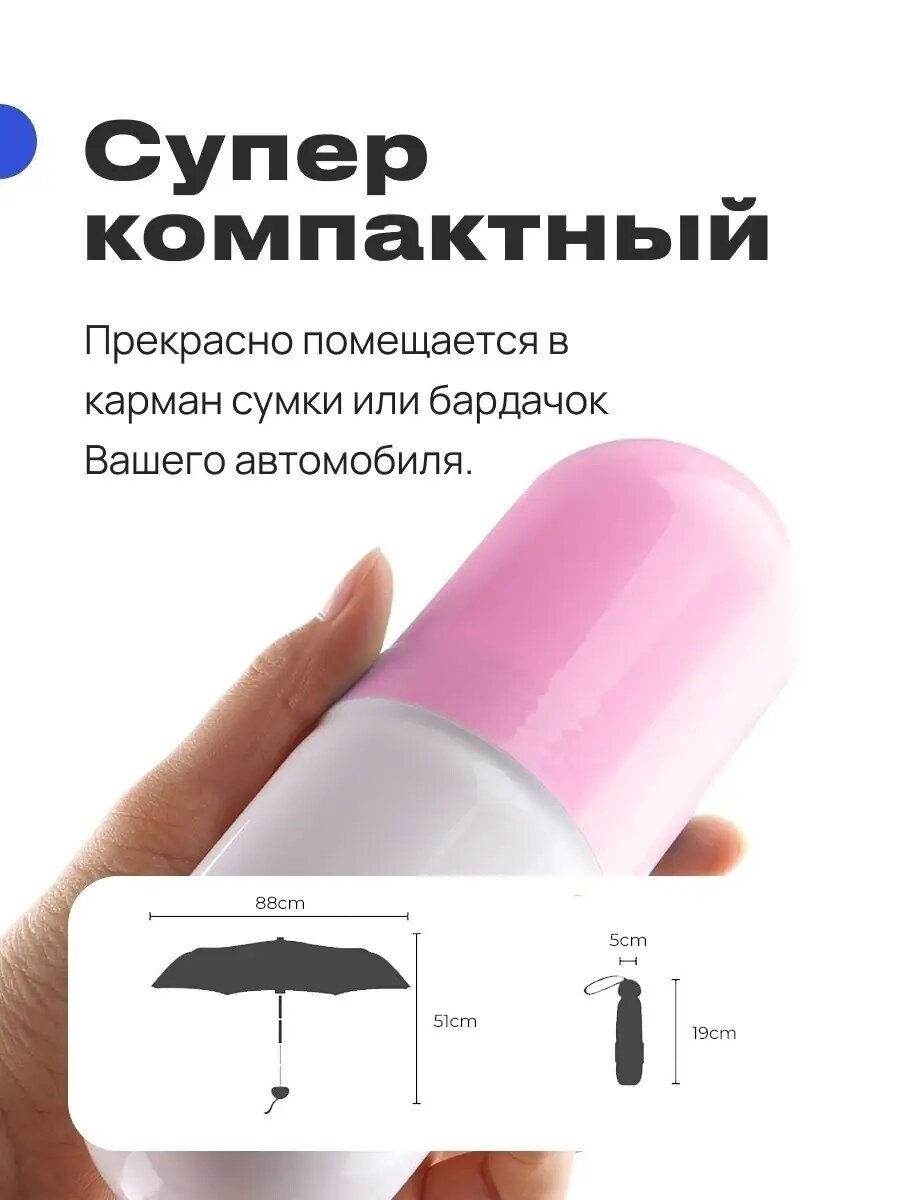 | Отзыв: | Отличный зонт. Купила из-за компактного размера и необычного чехла-капсулы. Проверку Питерским дождём уже прошёл) удобно что чехол непромакаемый! |
