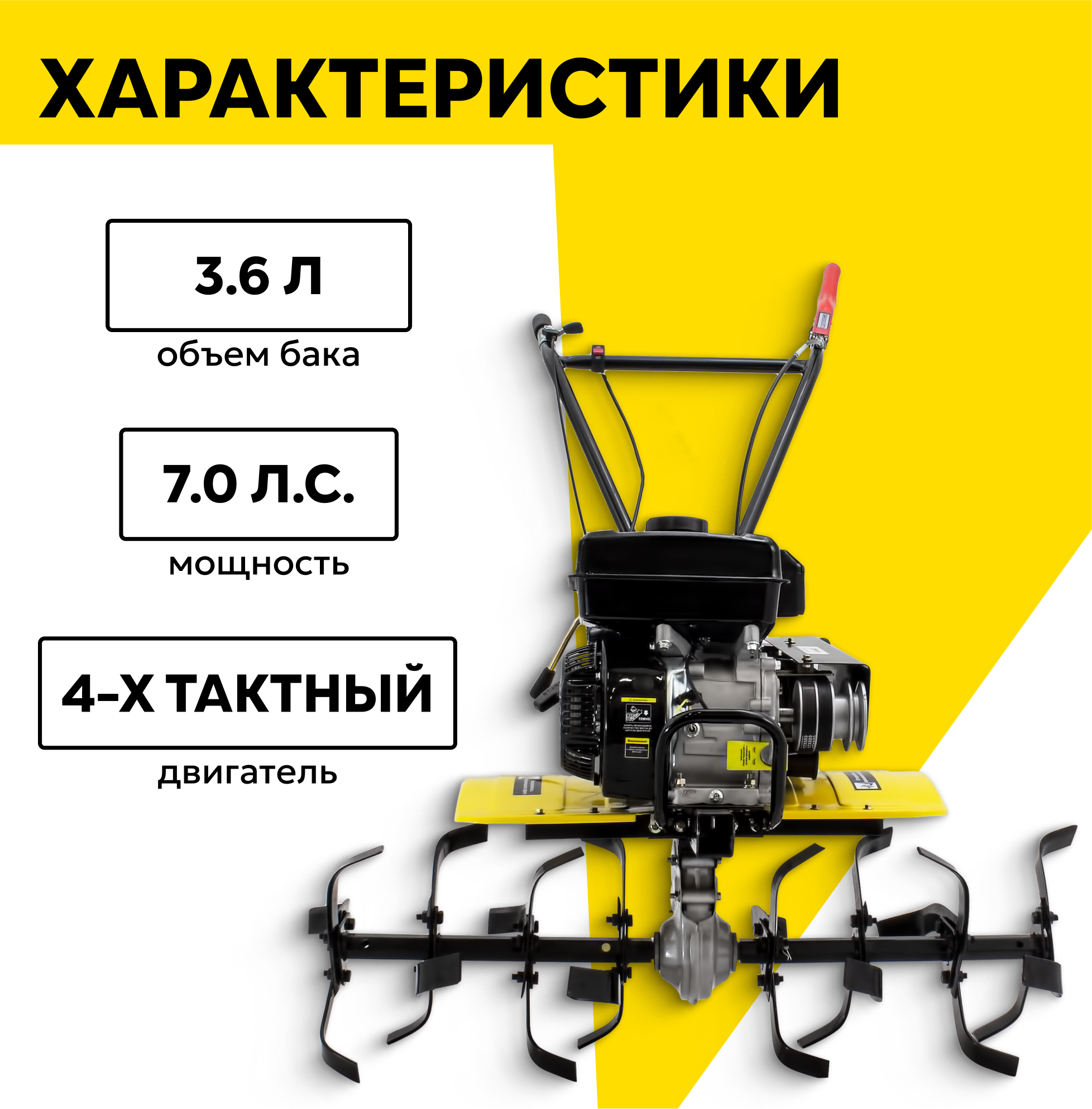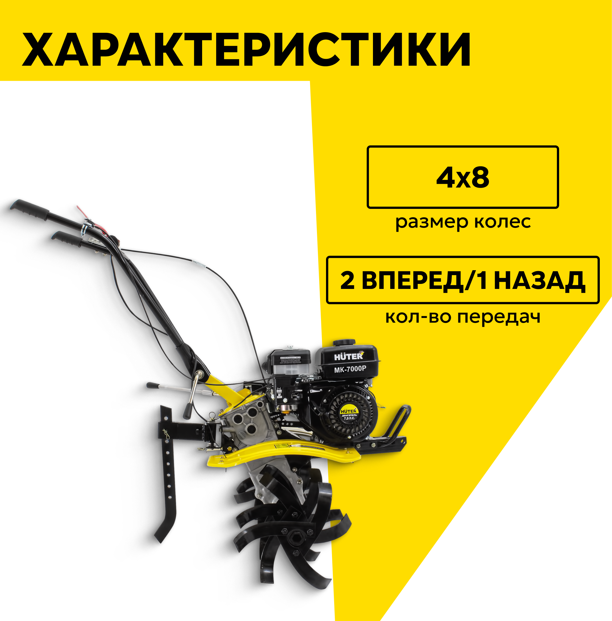 Сельскохозяйственная машина HUTER MK-7000Р, 7 л. с, четырехтактный, бензин, бак – 3.6 л, ширина – 100 см интересное:
