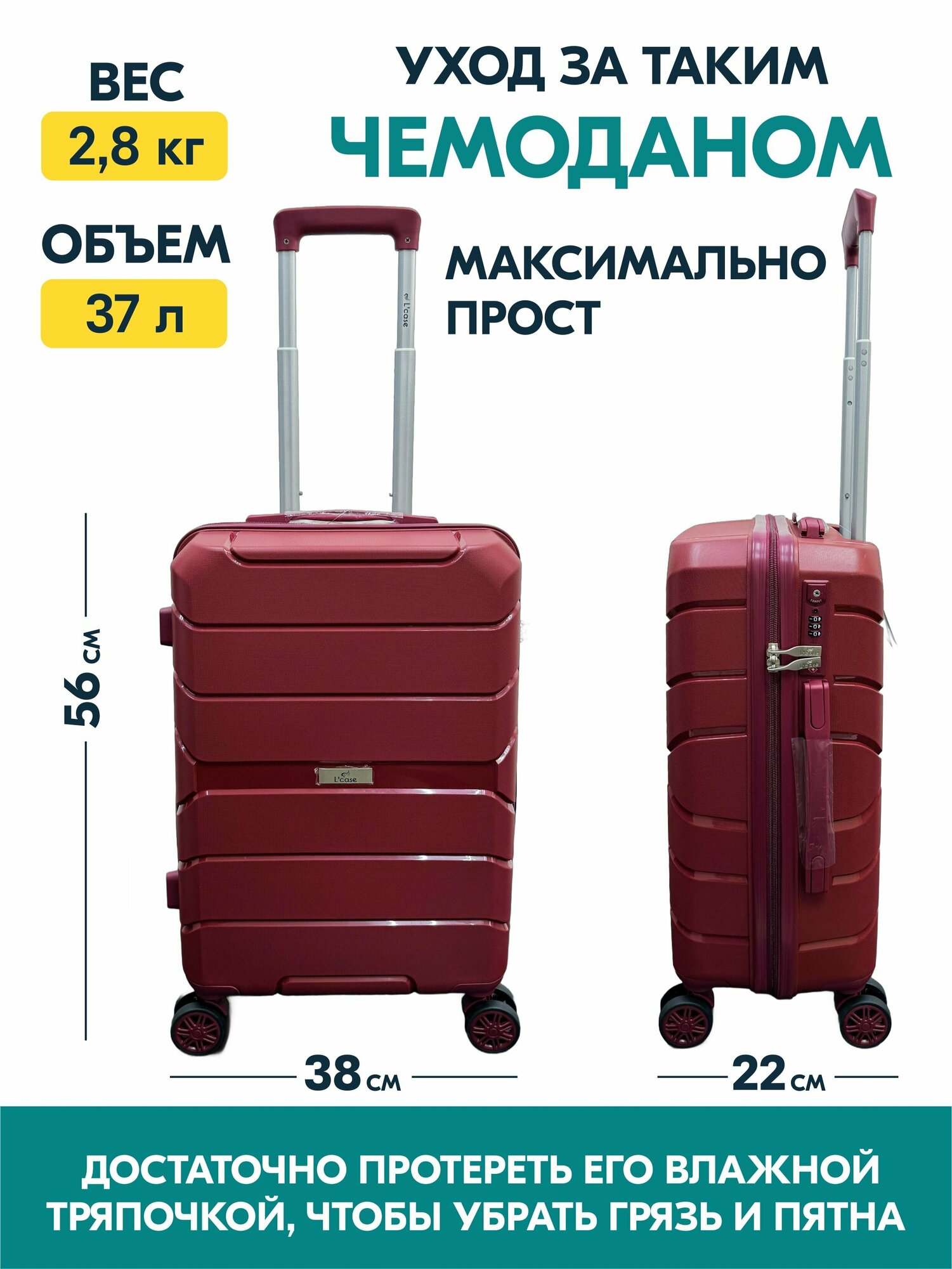 Чемодан на колесах маленький S полипропилен пластиковый Singapore, дорожный, ударопрочный, кодовый замок, ручная кладь, 53см, 29л