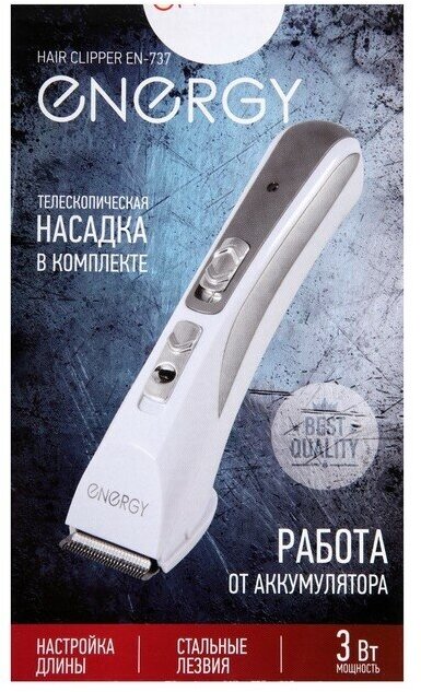 Машинки для стрижки Energy Машинка для стрижки ENERGY EN-737, 3 Вт, АКБ, белая