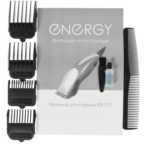 Машинка для стрижки ENERGY EN-717 13 Вт, 4 насадки, серебристый