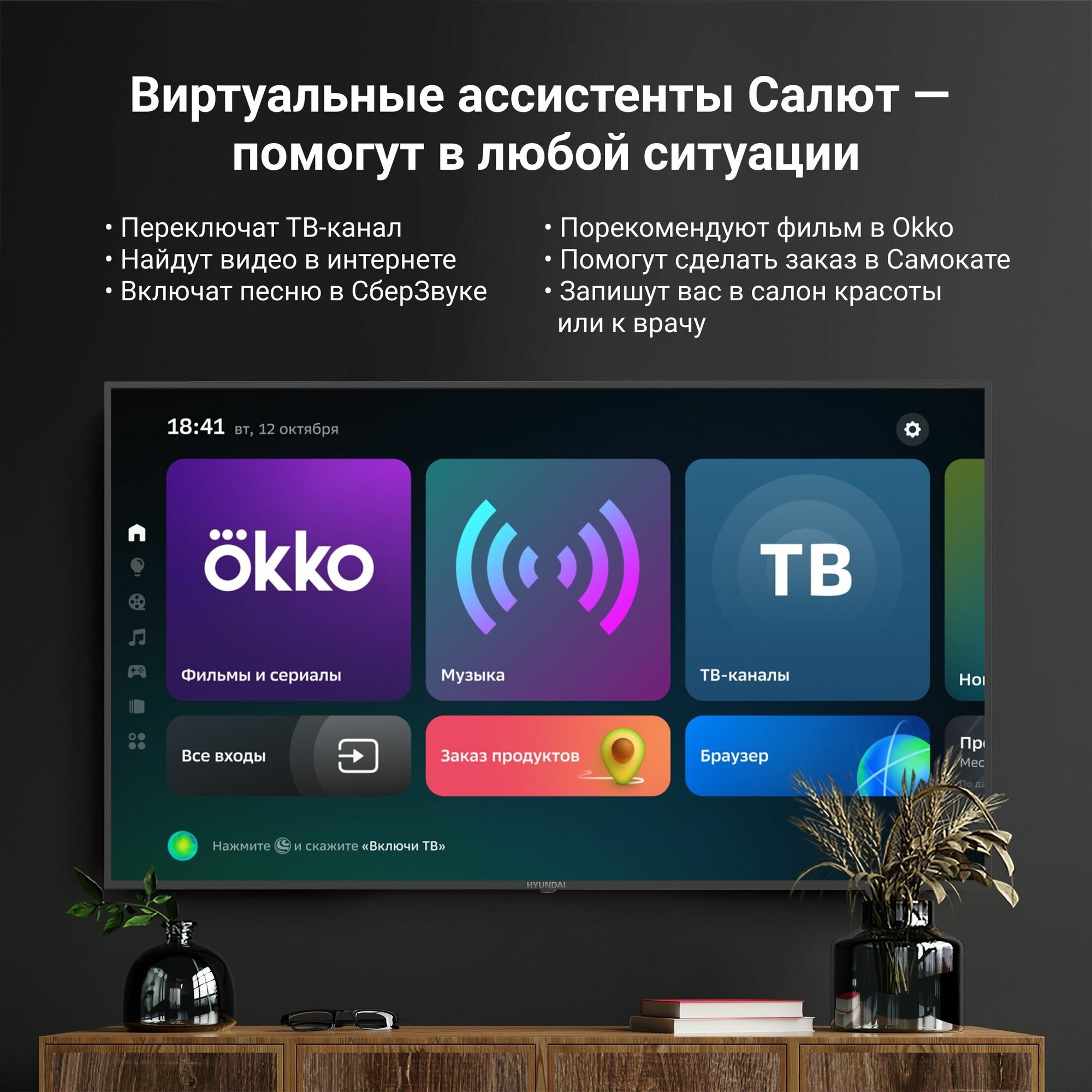 | Плюсы: | + Салют Тв работает исправно, срабатывает на голос быстро