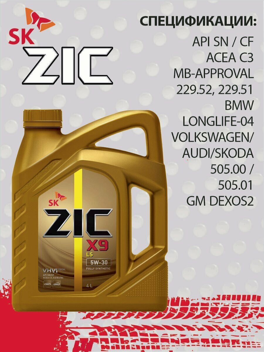 Масло моторное ZIC X9 LS 5w30 синтетическое, SN/CF, ACEA C3, универсальное, 4л, арт. 162608