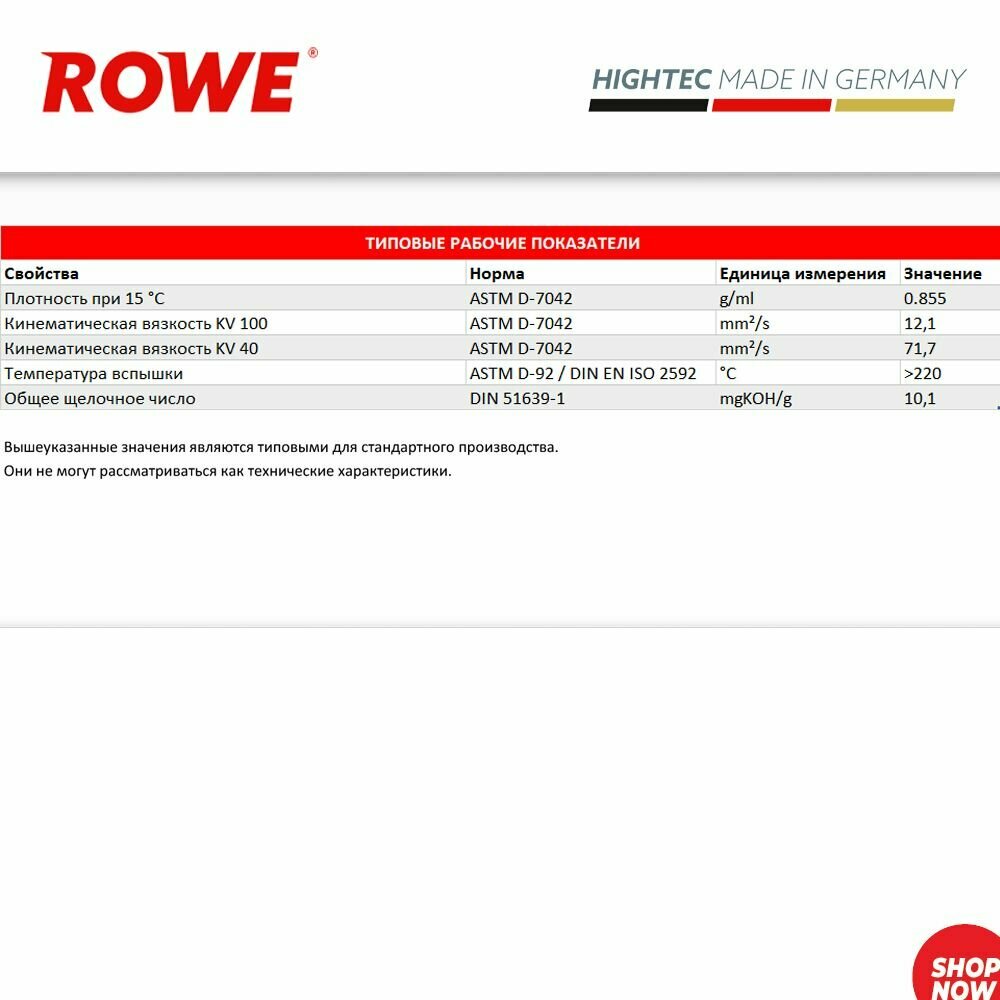 ROWE Rowe Hightec Synt Rs Sae 5W30 Hc-D Api Sl Синт 60Л