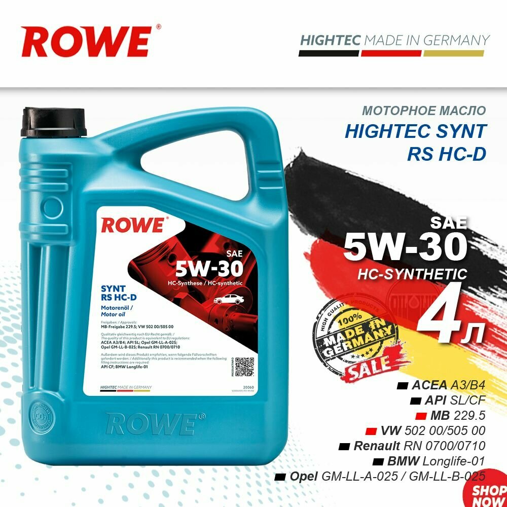 ROWE Cинтетическое Моторное Масло Hightec Synt Rs D1 Sae 5W-30 4Л.