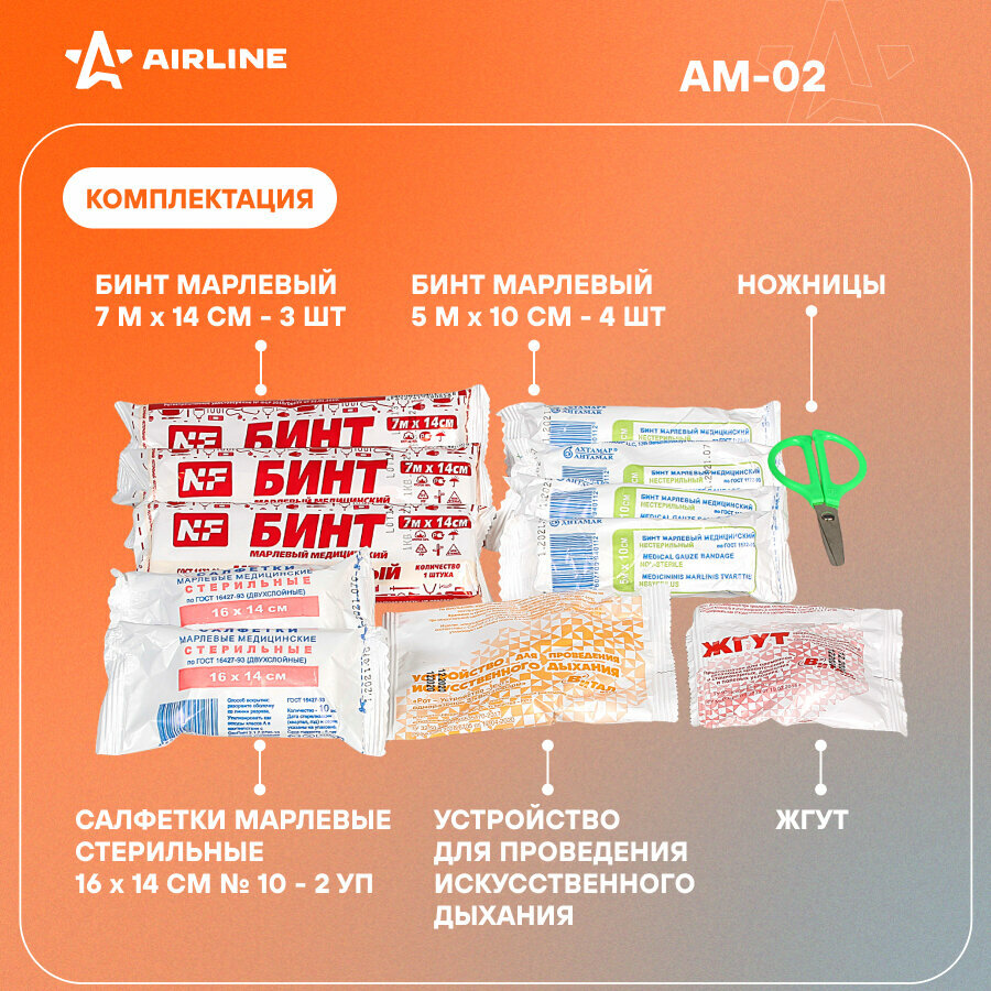 Аптечка автомобильная (Соответствует требованиям ГИБДД) AIRLINE AM-02