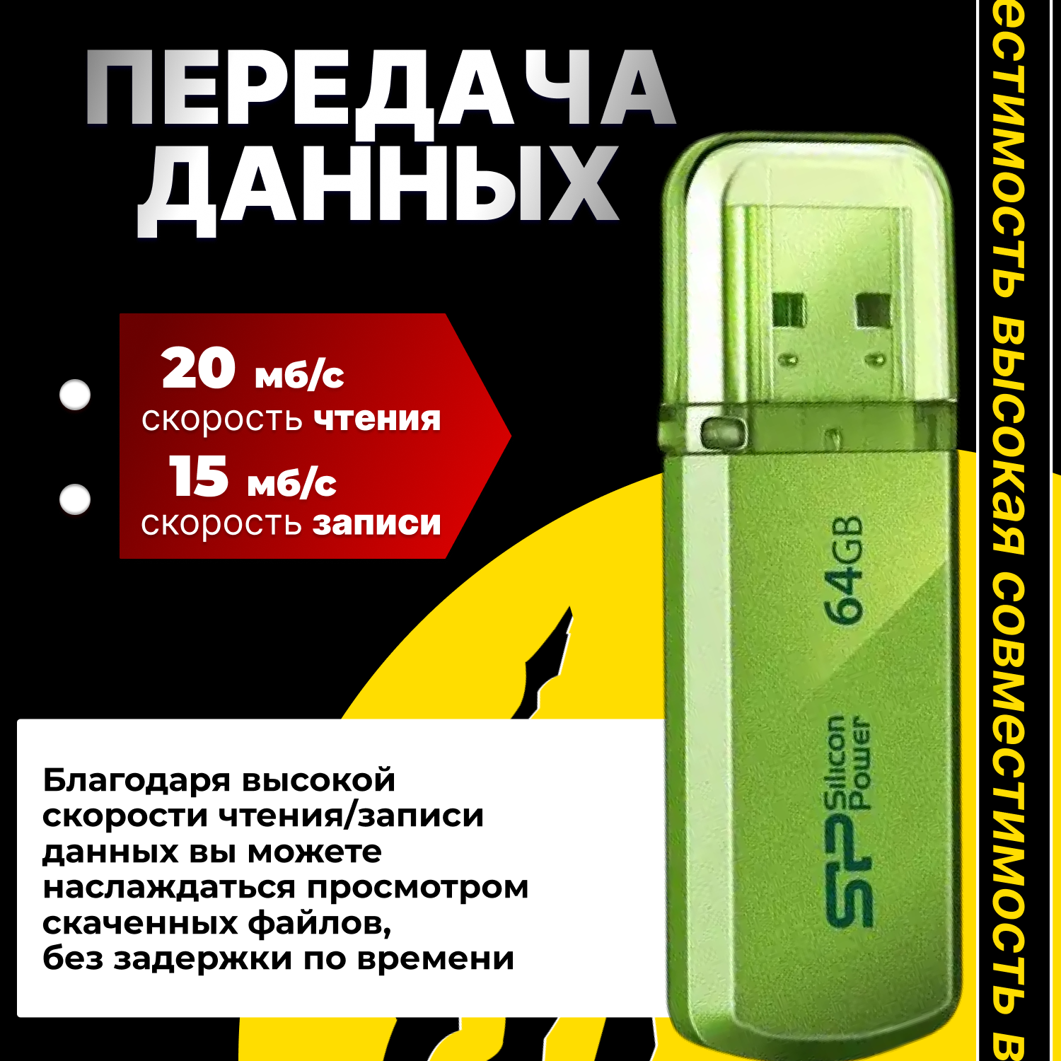 Флешка USB Silicon Power Helios 101 64ГБ, USB2.0, зеленый [sp064gbuf2101v1n]
