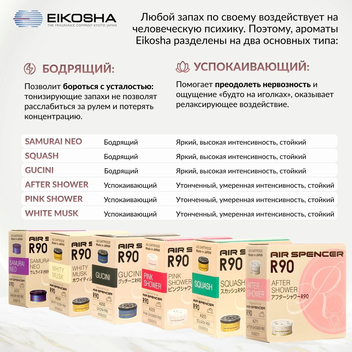 EIKOSHA ароматизатор для машины и дома меловой Spirit Refill R90 - GUCINI / гучини, автомобильный парфюм, арт. A-200