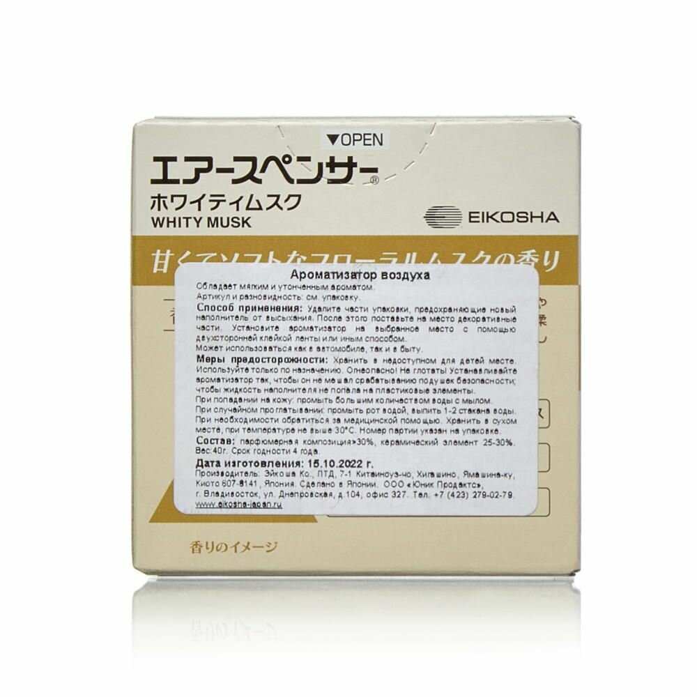 СохранитьEIKOSHA ароматизатор для машины и дома меловой Spirit Refill - WHITY MUSK / белый мускус, автомобильный парфюм, арт. A-43 интересное: