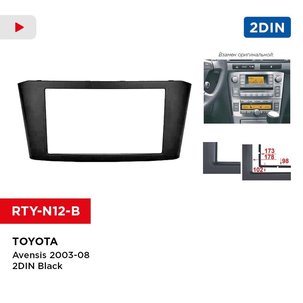 Incar RTY-N12-B | 2DIN переходная рамка Toyota Avensis 2003-2008