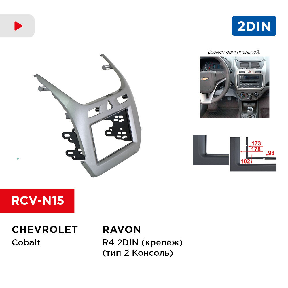 Рамка CHEVROLET Cobalt, RAVON R4 2din (крепеж) (тип2 Консоль) (Incar RCV-N15) интересное: