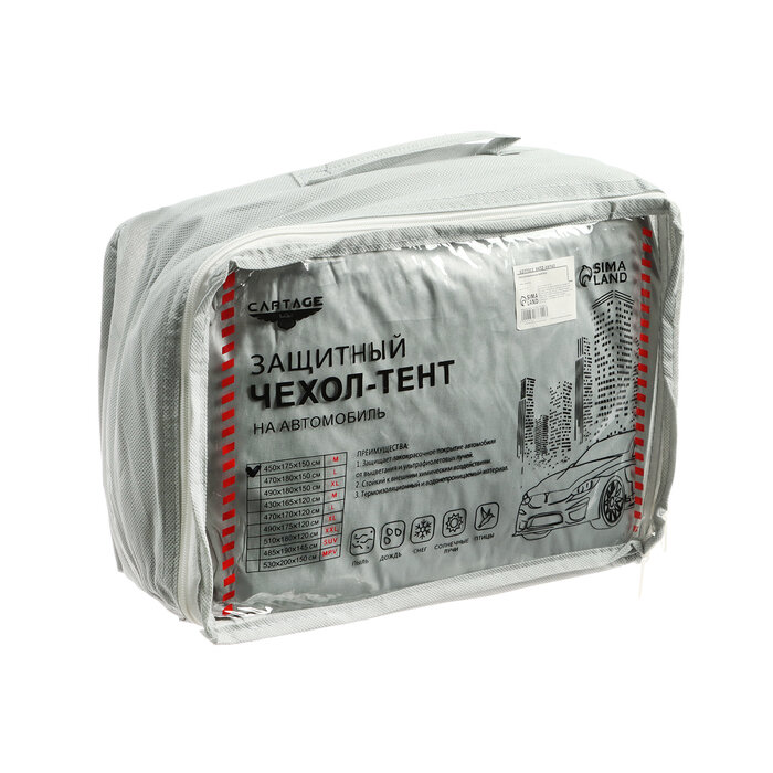 Тент автомобильный CARTAGE Premium, водонепроницаемый, 'M' , 450x175x150 см