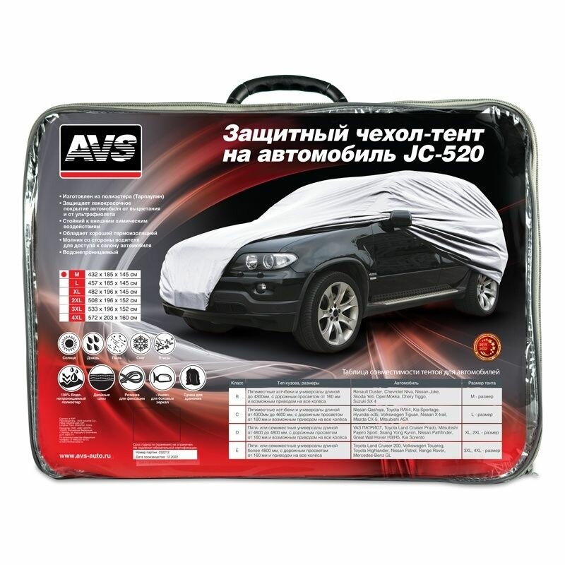 Чехол-тент на автомобиль AVS JC-520, 43424 2XL, 508х196х152 см, водонепроницаемый 1668170 .