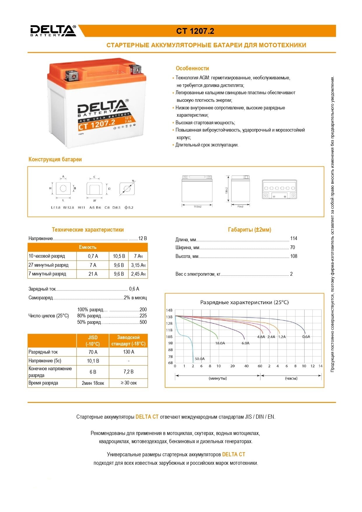 СохранитьМото аккумулятор Delta CT 1207.2 12В 7Ач обратная полярность 130А (12V 7Ah) (YTZ7S) AGM, аккумулятор для мотоцикла, квадроцикла, скутера, мопеда, гидроцикла, снегохода, дизельного генератора интересное:
