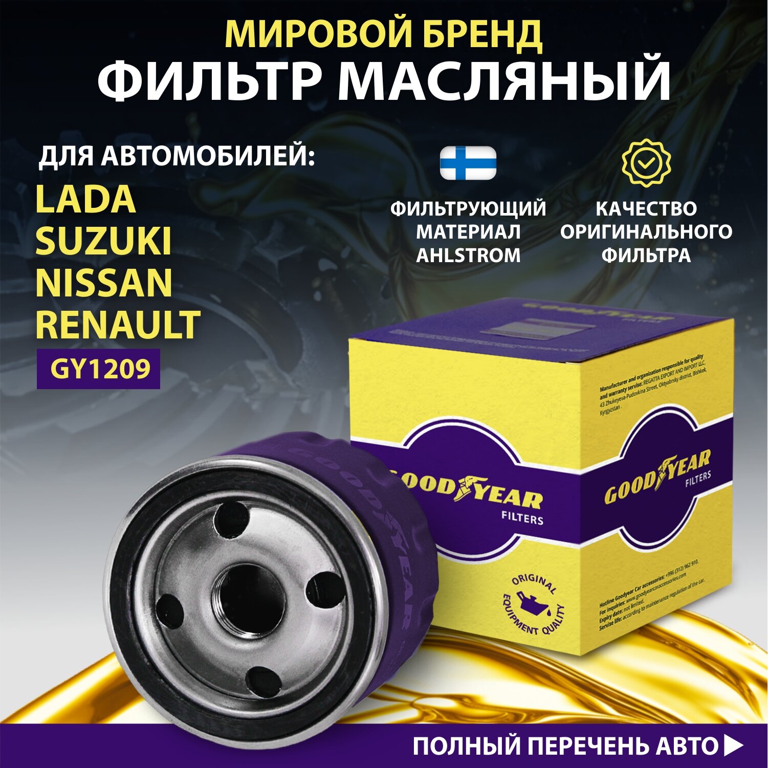 Купить Фильтр масляный автомобильный Goodyear GY1209 LADA ; RENAULT ; NISSAN ; SUZUKI