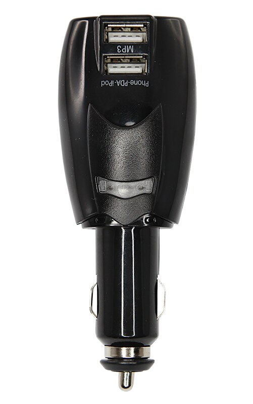 Универсальное ЗУ-трансформер авто+сетевое 2 USB цвет черный (2х1000 mA)c индикатором, блистер