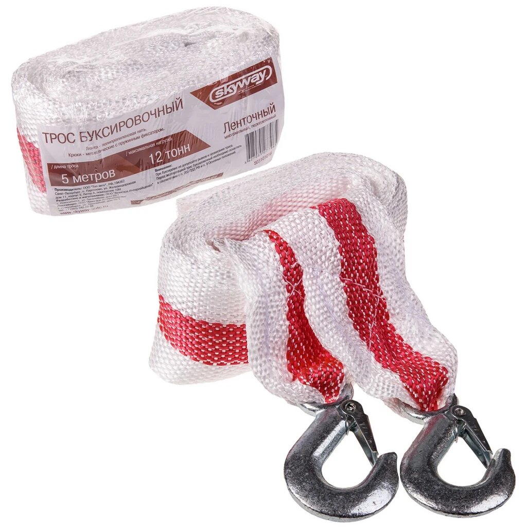 Купить Трос буксировочный (12 т) 5 м "SKYWAY" ленточный (2 крюка в пакете)