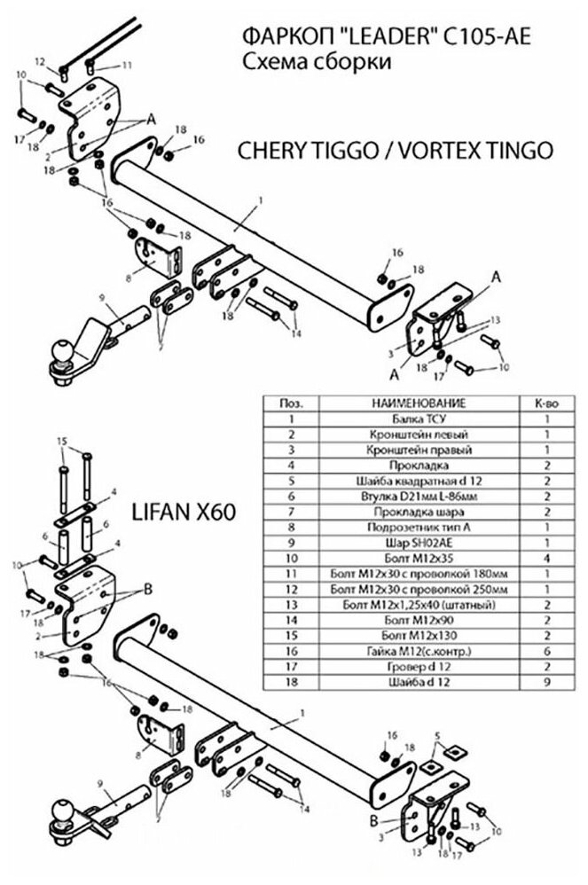 Фаркоп Лидер Плюс на Чери Тигго Т11 ФЛ 2005-2016, арт: C105-AE-1 интересное: