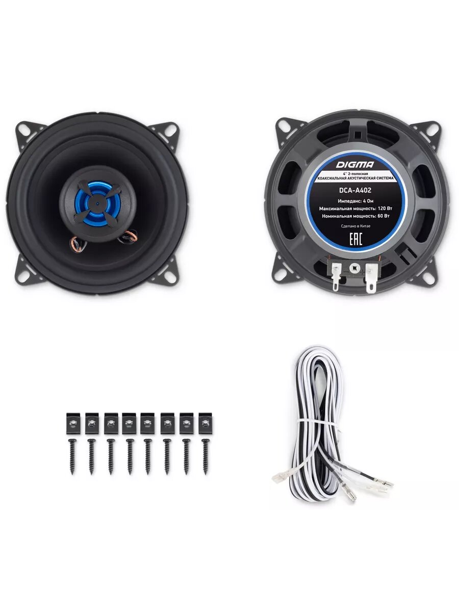 Колонки автомобильные DIGMA DCA-A402, 10 см (4 дюйм.), комплект 2 шт.