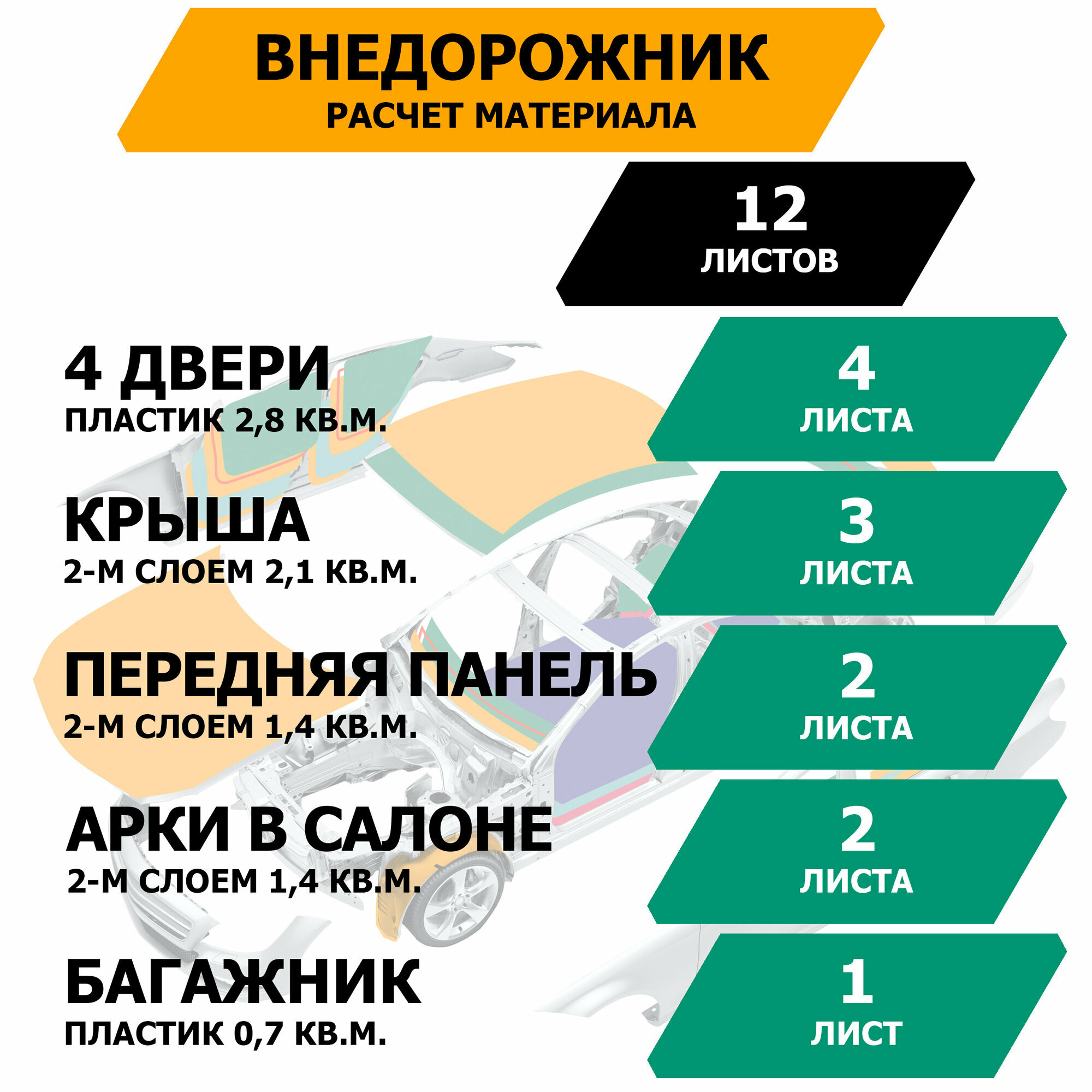 Шумофф Reflex 2 - 36 листов 37.5 см х 23 см Виброизоляция для автомобиля - для потолка, дверей, капота, багажника - толщина 2.0 мм