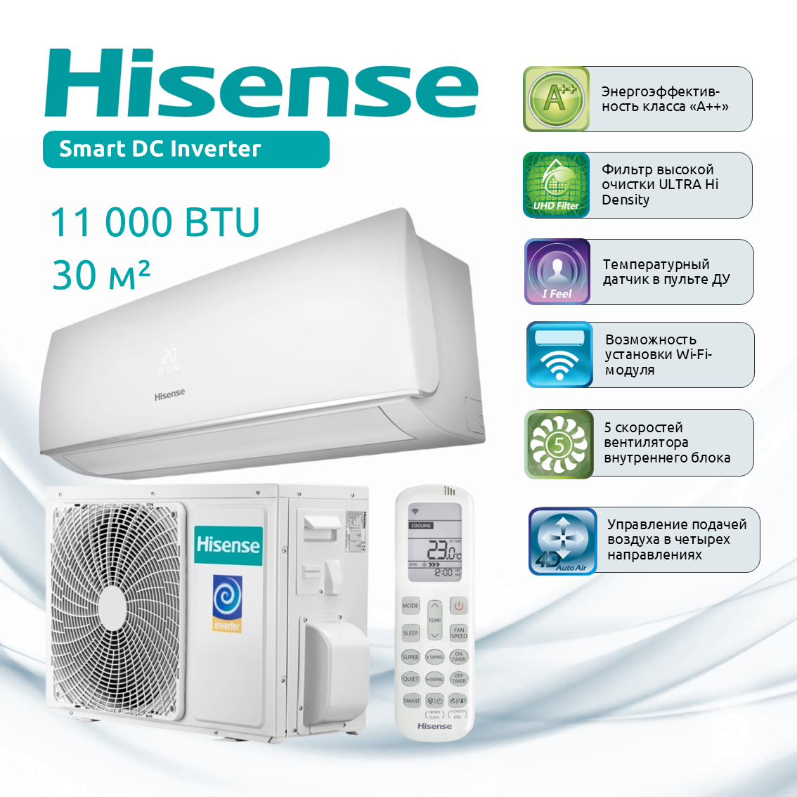 Купить Инверторный кондиционер Hisense AS-11UW4RYDDB02 Smart DC Inverter, 30 кв. м