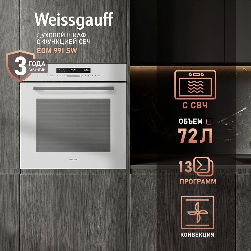Купить Электрический духовой шкаф Weissgauff EOM 991 SW с СВЧ, объем XXL 72 л, 60 см, 3 года гарантии