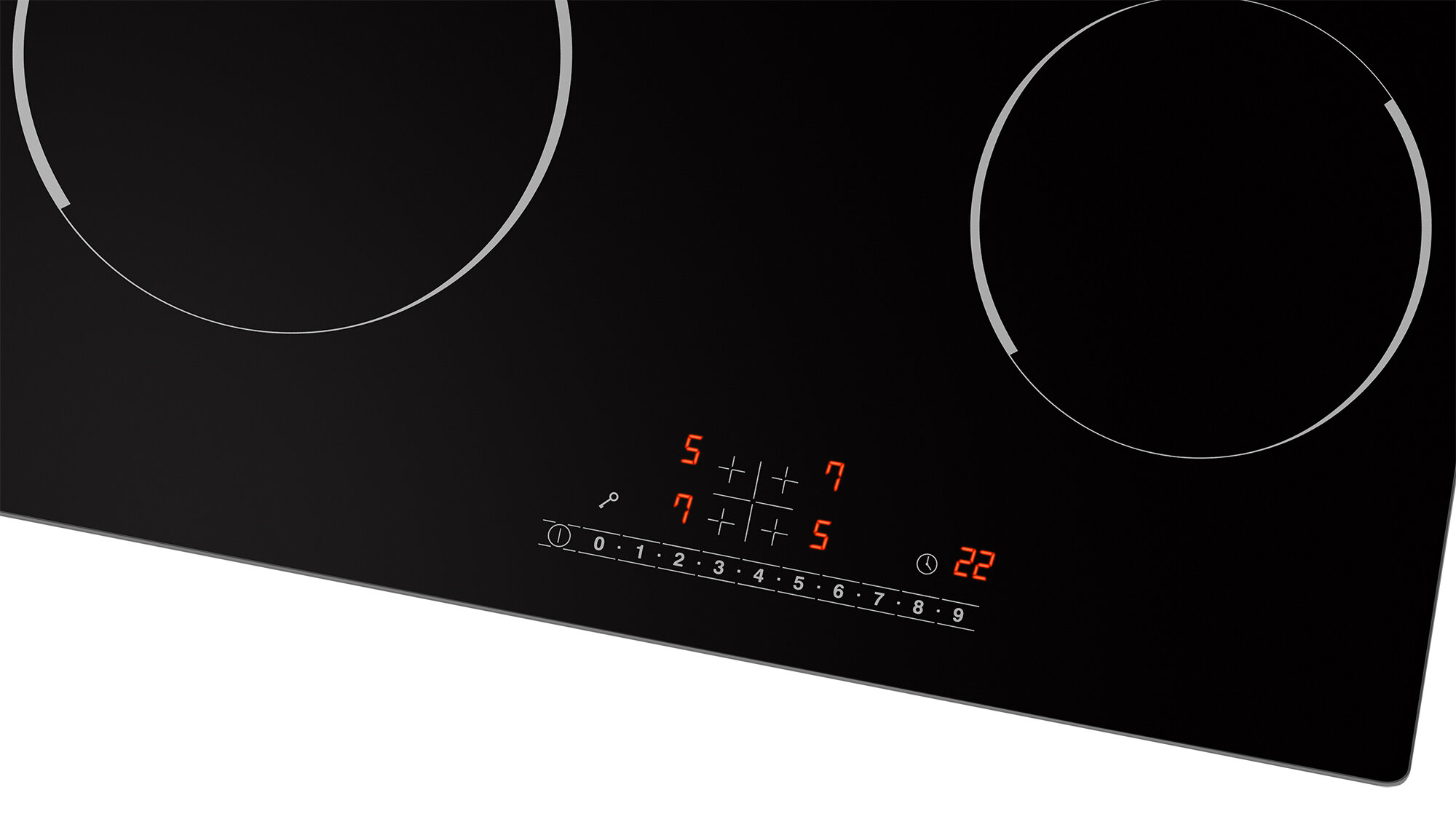 мощность конфорок: 2 х диам.200 х 1,8 кВт, 2 х диам.165 мм х 1,2 кВт; стеклокерамика Vitro Ceramic Glass; технология TC Slider (регулировка температуры одним касанием);