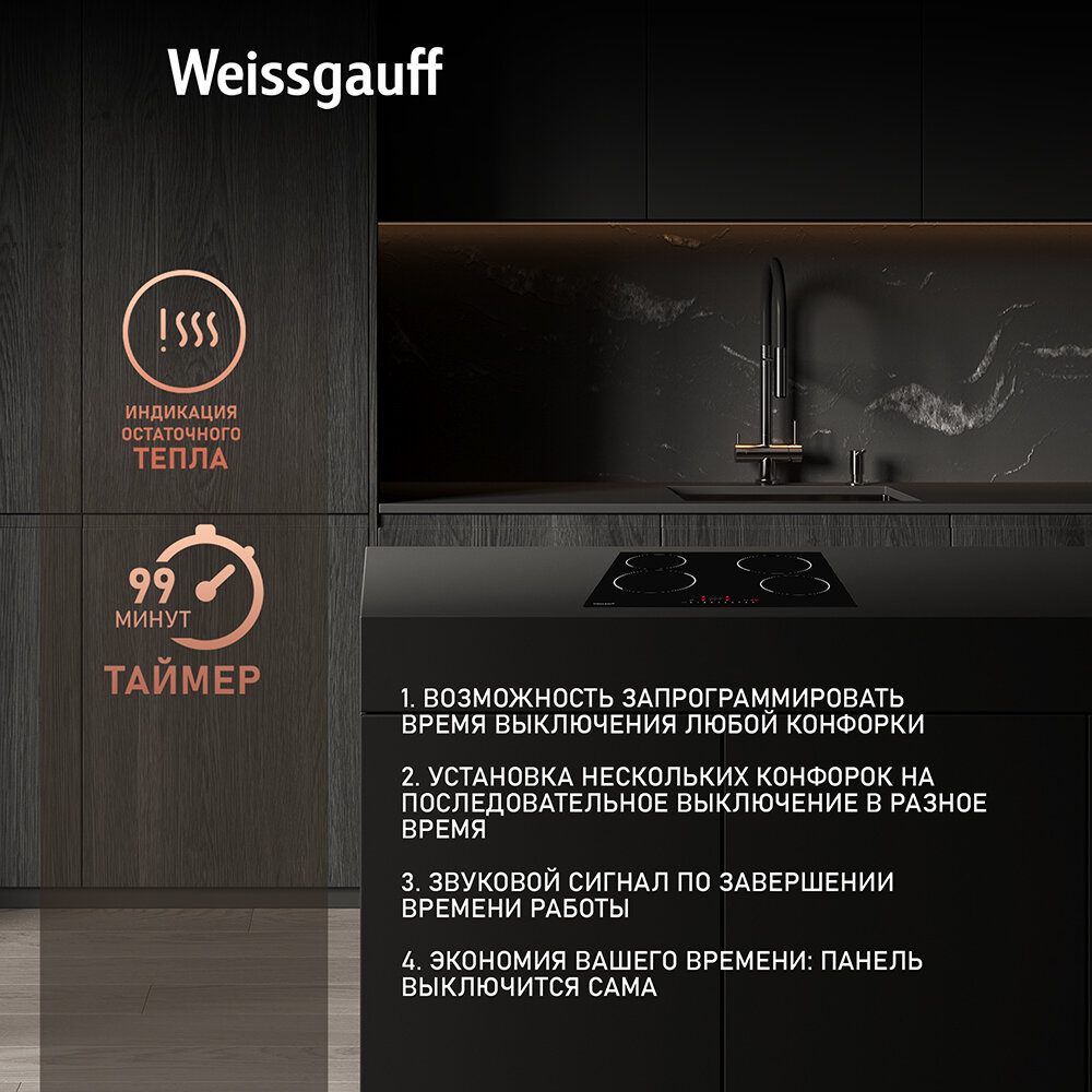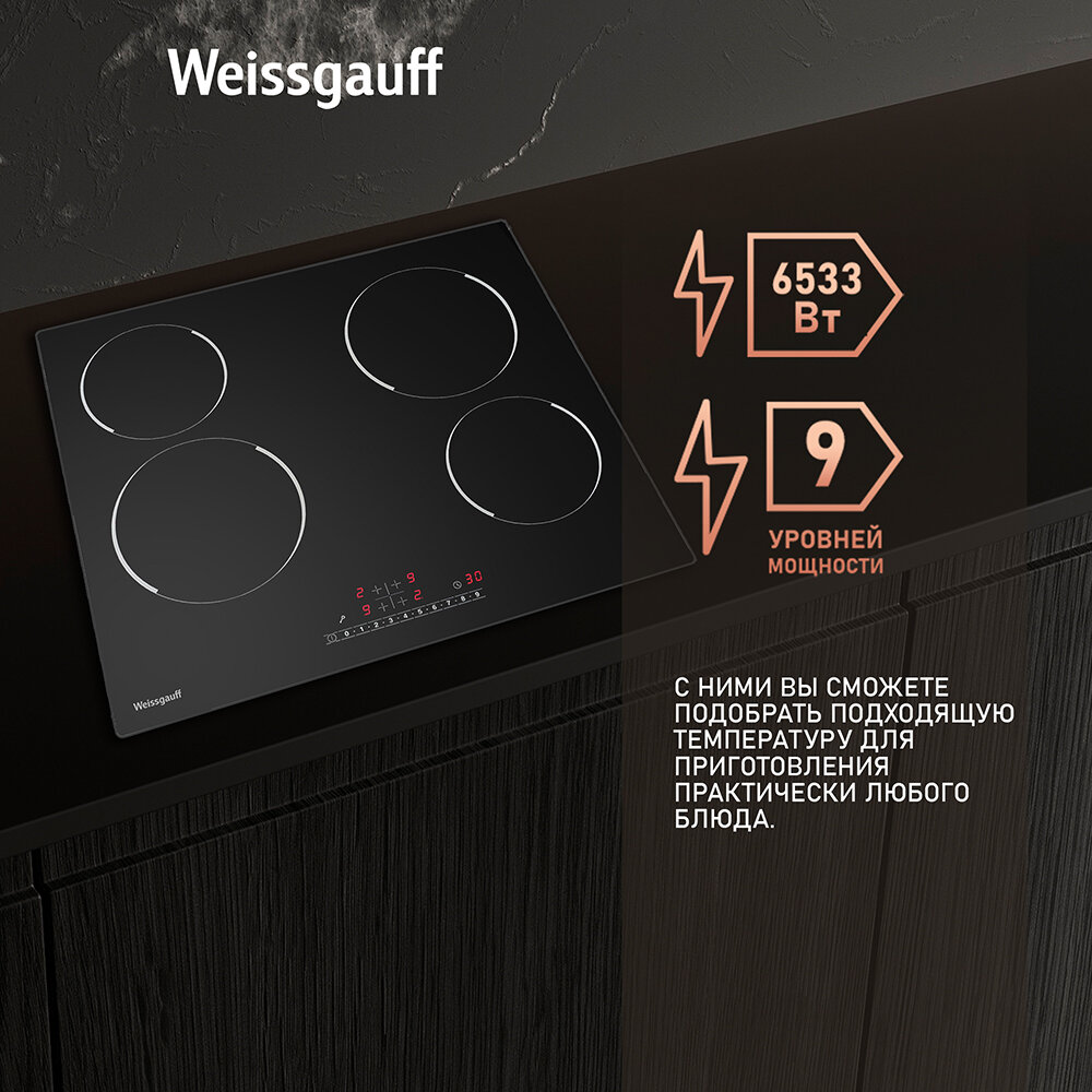 Варочная панель со слайдером Weissgauff HV 640 BS сенсорное управление One Touch, 3 года гарантии, 59 см ширина, блокировка от детей, таймер интересное:
