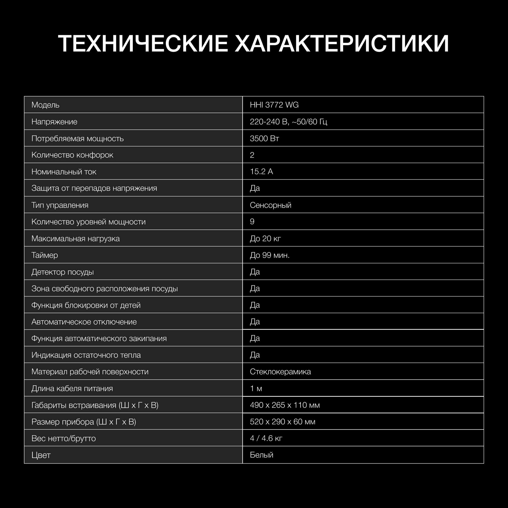 Купить Индукционная варочная поверхность Hyundai HHI 3772 WG белый