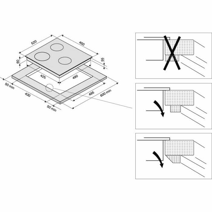 | Минусы: | тихий звук таймера, очень маркая поверхность, высокая температура под плитой, толщина встройки, на низких режимах импульсная работа |