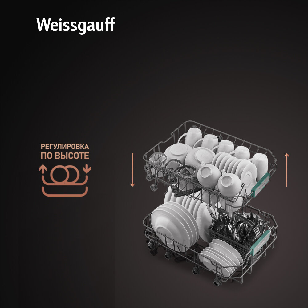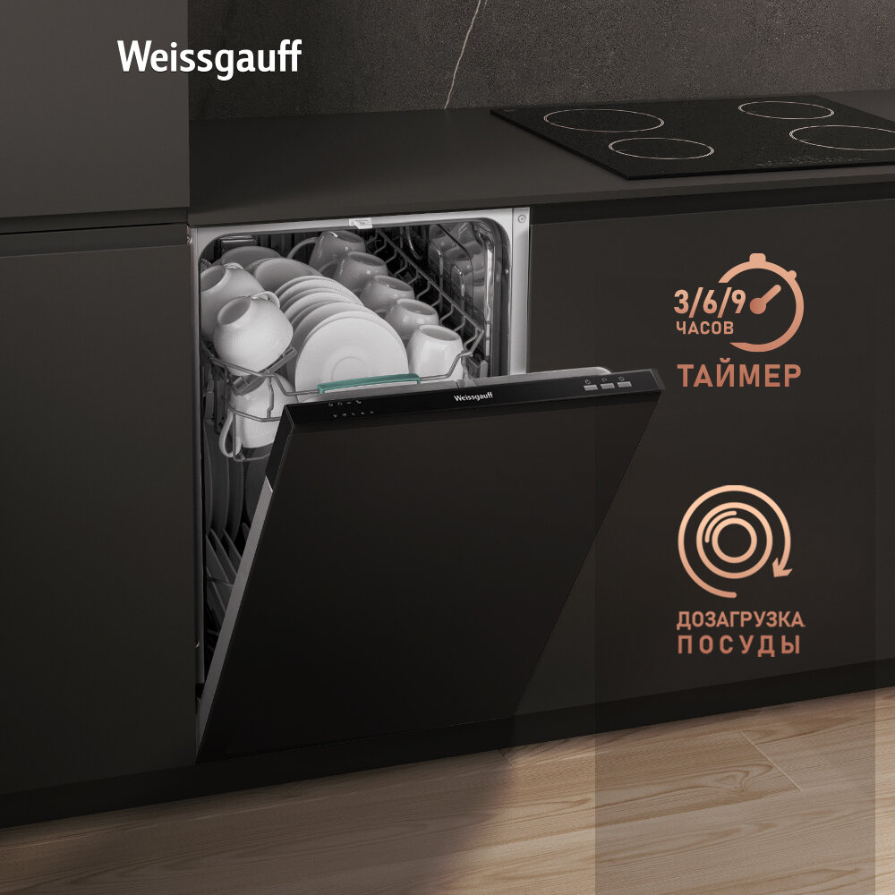 Встраиваемая посудомоечная машина узкая 45 см с лучом на полу Weissgauff BDW 4004, А++ интересное: