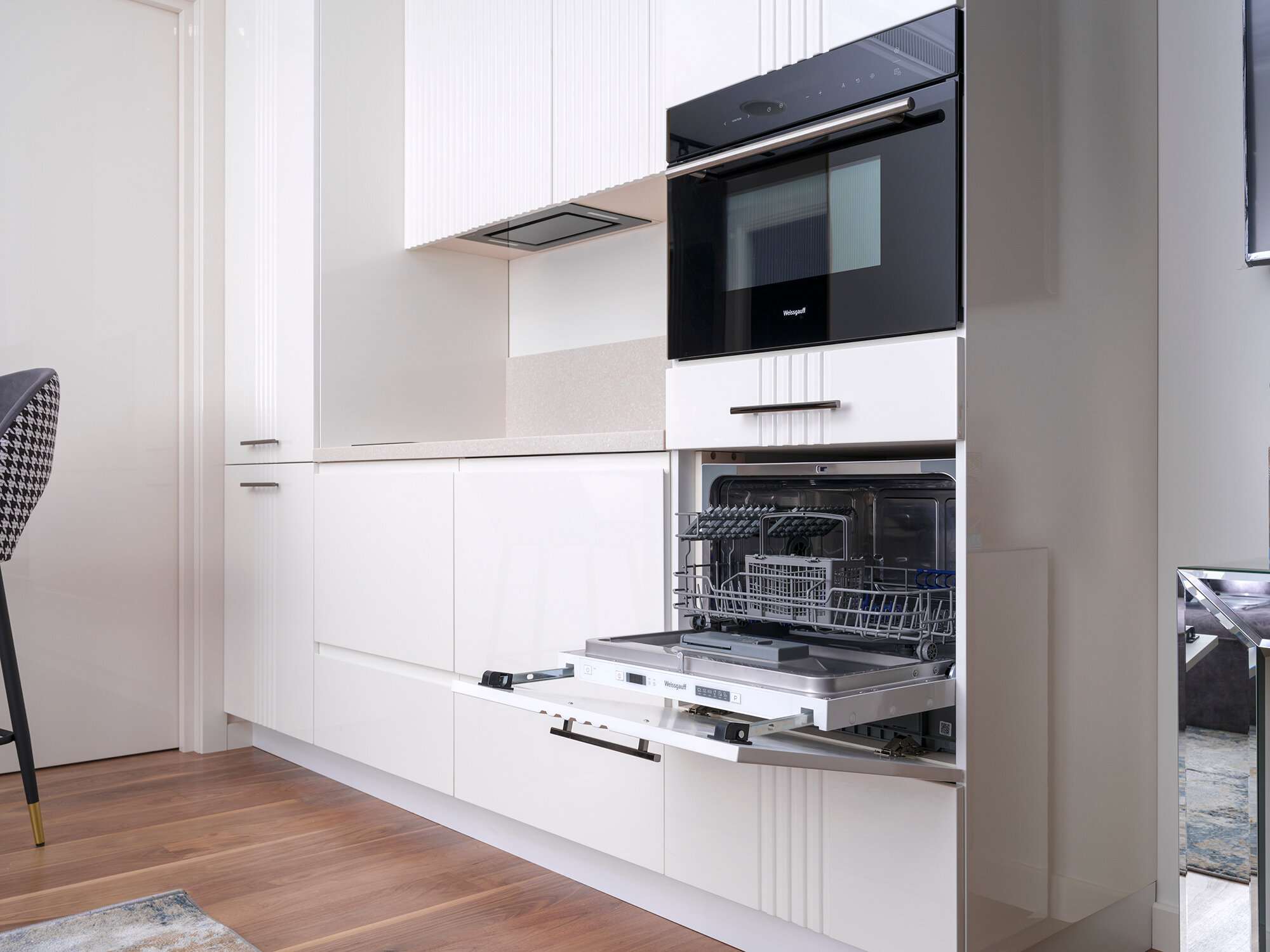 | Минусы: | Невозможно поставить на пол и закрыть цоколем, как обычную высокую посудомойку |