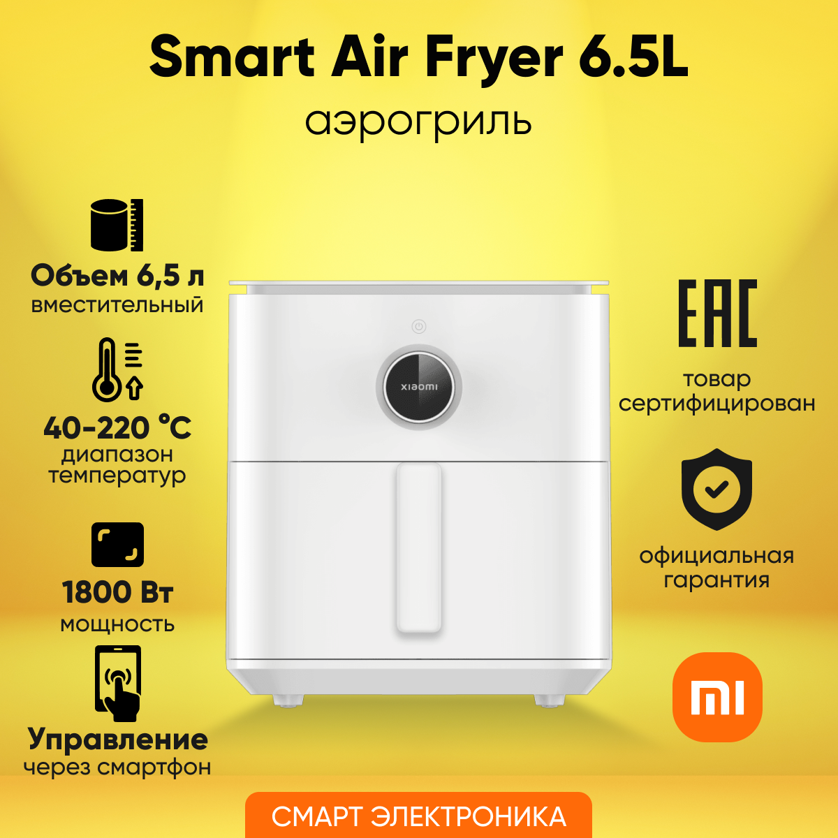 Аэрогриль Xiaomi Smart Air Fryer 6.5L White EU BHR7358EU фритюрница (MAF10) интересное: