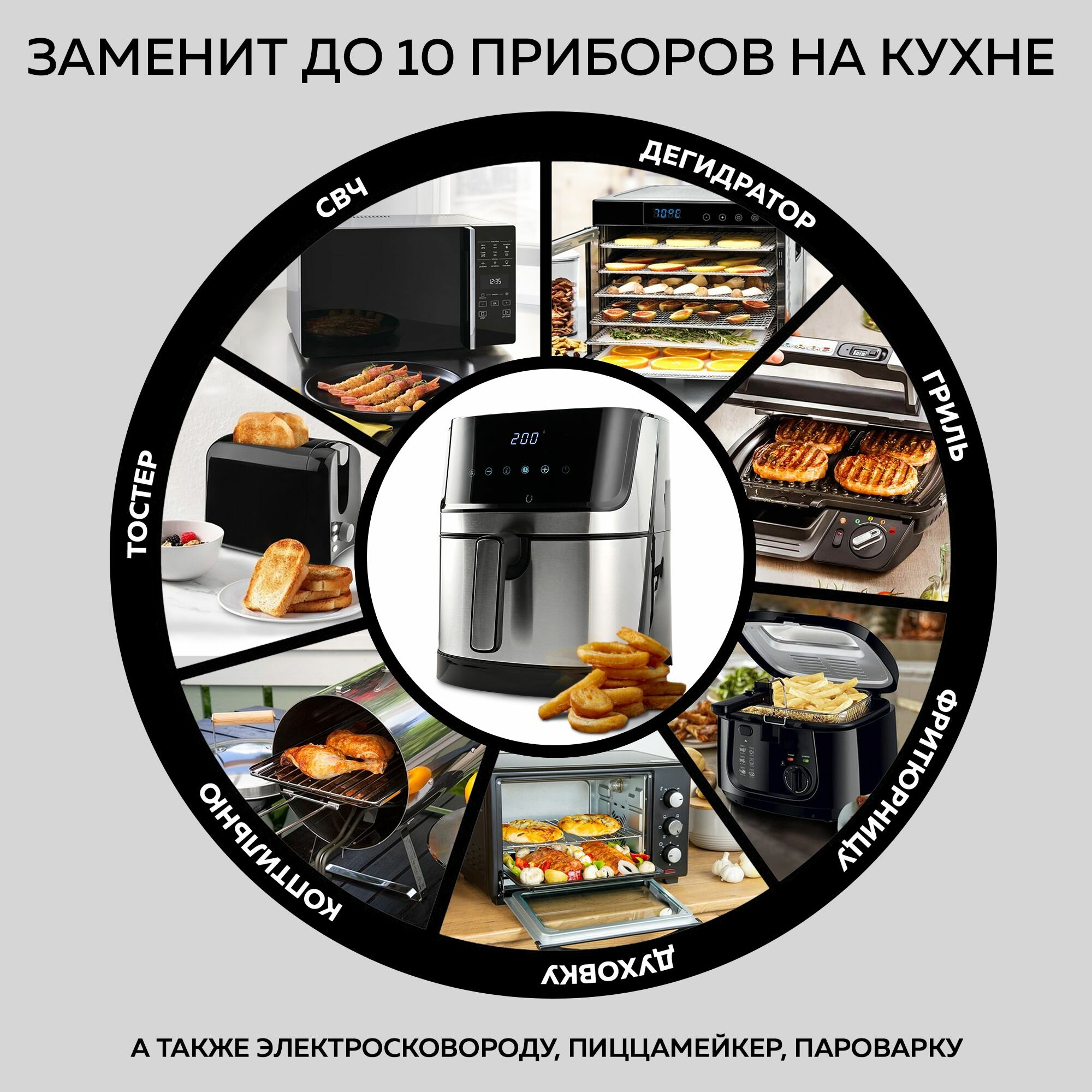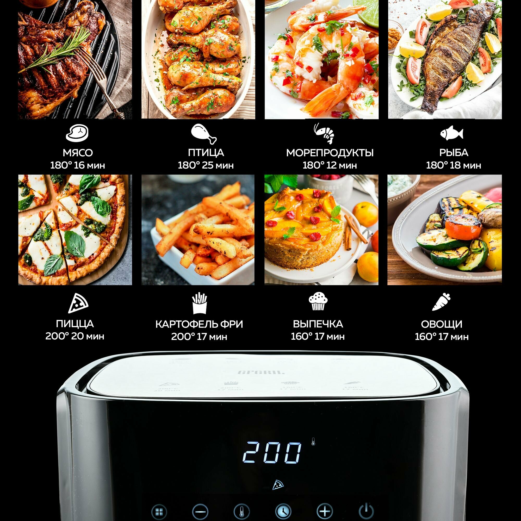 Наконец то выбрала, купила (помогла отличная скидка в чёрную пятницу). Лёгкий, удобно стоит, смотрится отлично. Установка функций дико простая, как и регулировка. Перед готовкой прогнала в холостую, был запах пластика. Первым закинули картошку, сняли через 10 мин. Кому нравится зажаристей, ждём до конца программы. Второе блюдо филе тунца в соевом соусе. Сняли чуть раньше. Итого ушло 25 мин, без капли масла. Это просто шедевр. Оочень довольна, дети тоже подключились, ищут рецепты. Спасибо производителю и валберис.