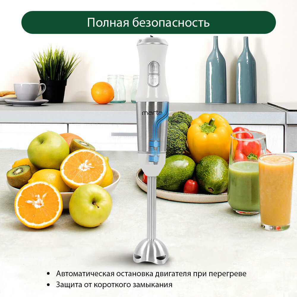 Погружной блендер MARTA MT-1574, белый жемчуг