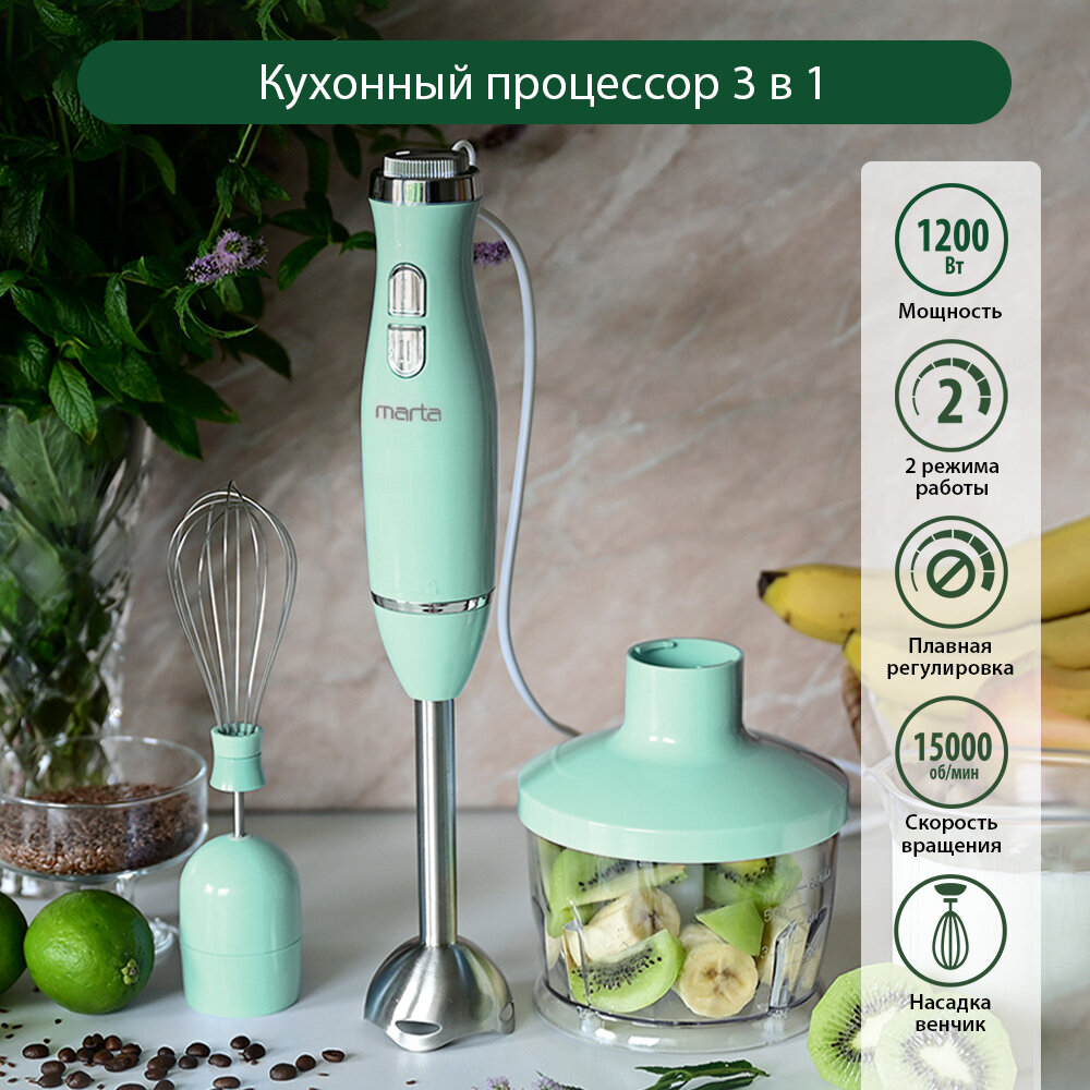 Купить Блендер погружной кухонный комбайн MARTA MT-1562 зеленая яшма