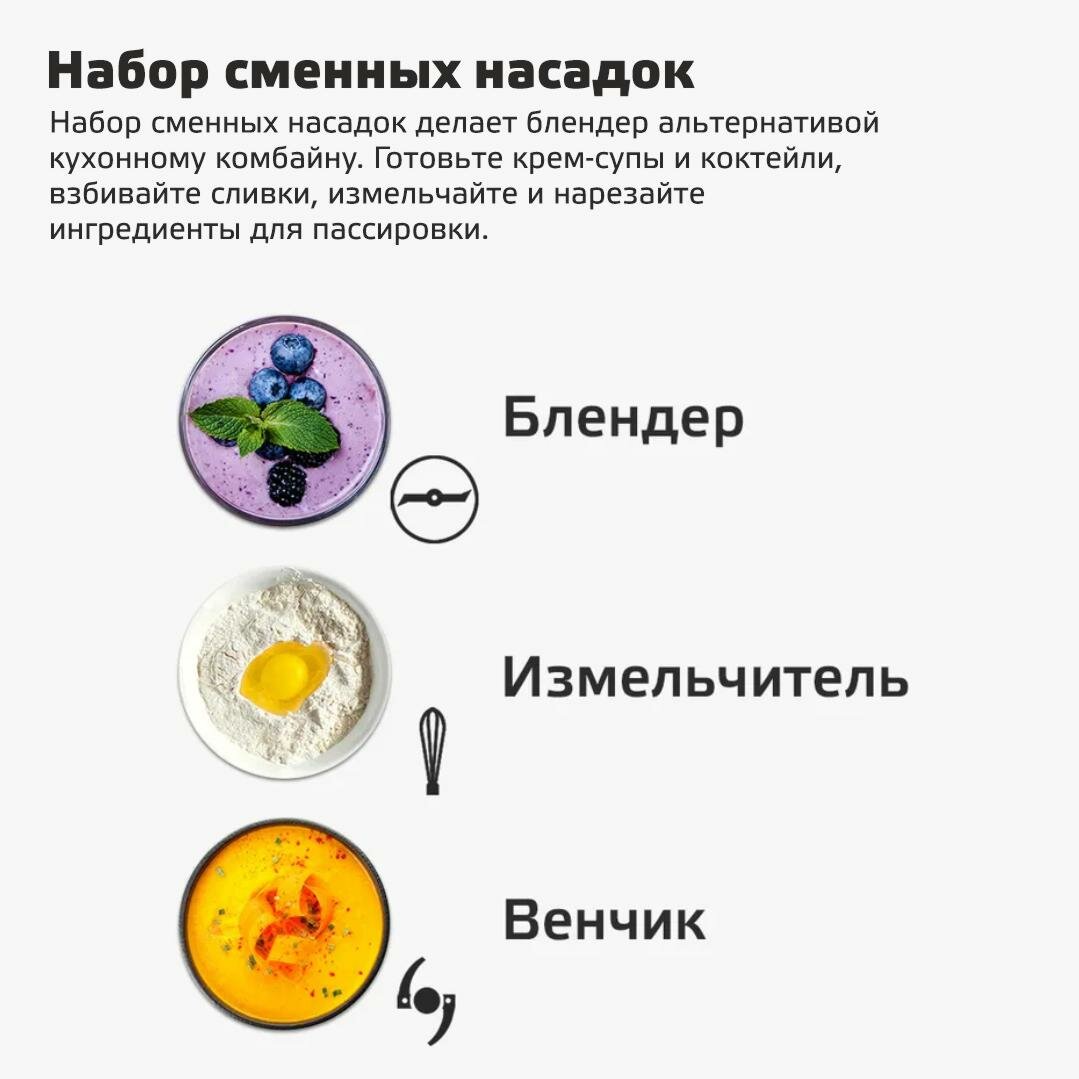 Погружной блендер 3 в 1, 2 скорости, мощность 800 Вт, небесно-голубой