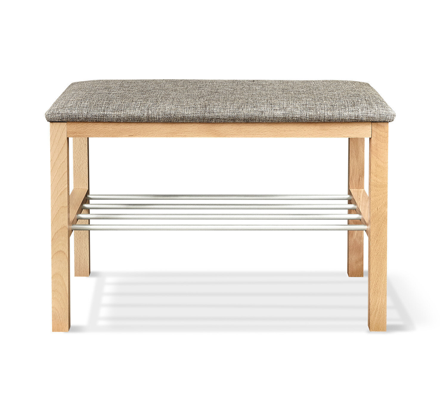 Банкетка-стеллаж для обуви Альберо SHT-B2, Цвет обивки: кедровый, Цвет корпуса: алюминий, дуб беленый