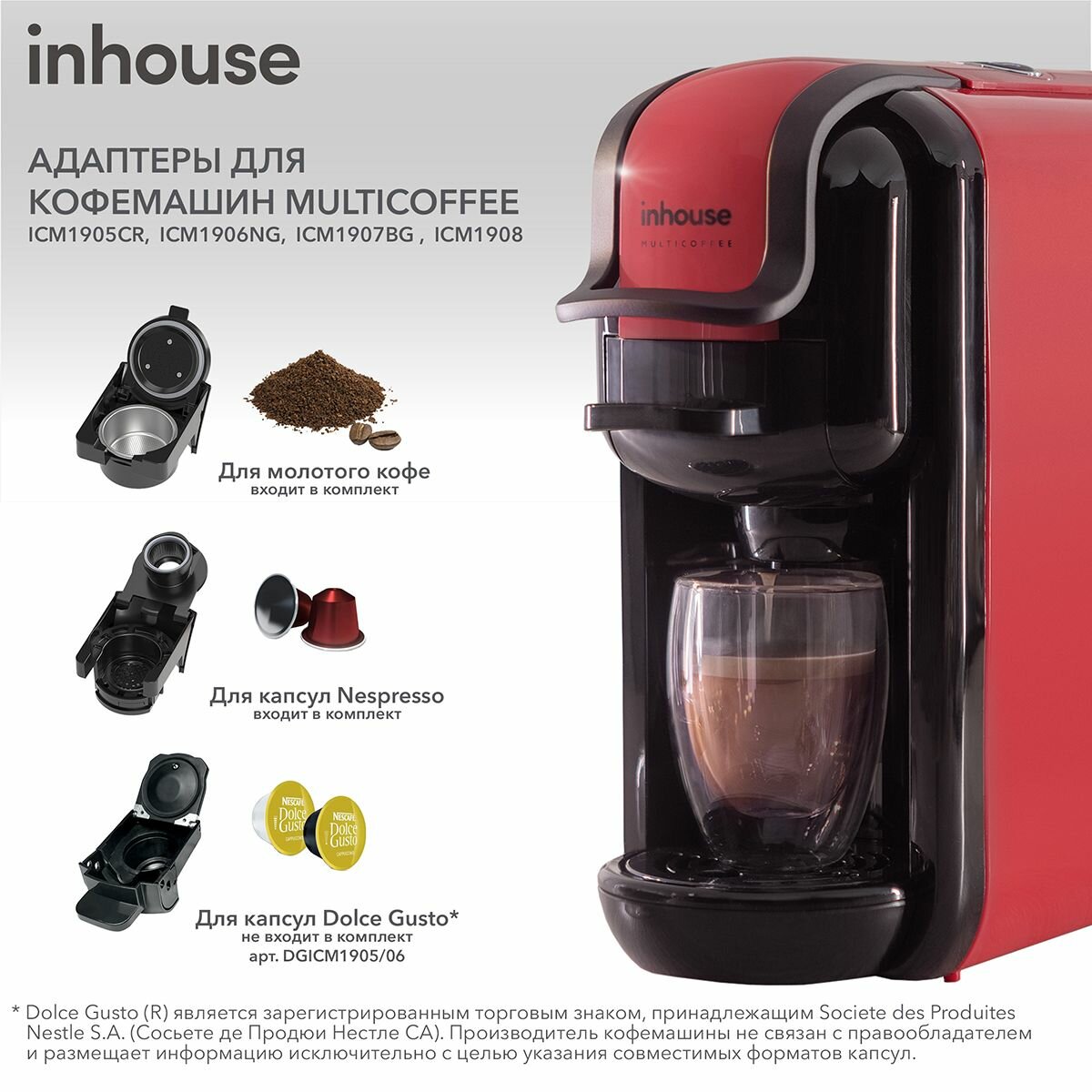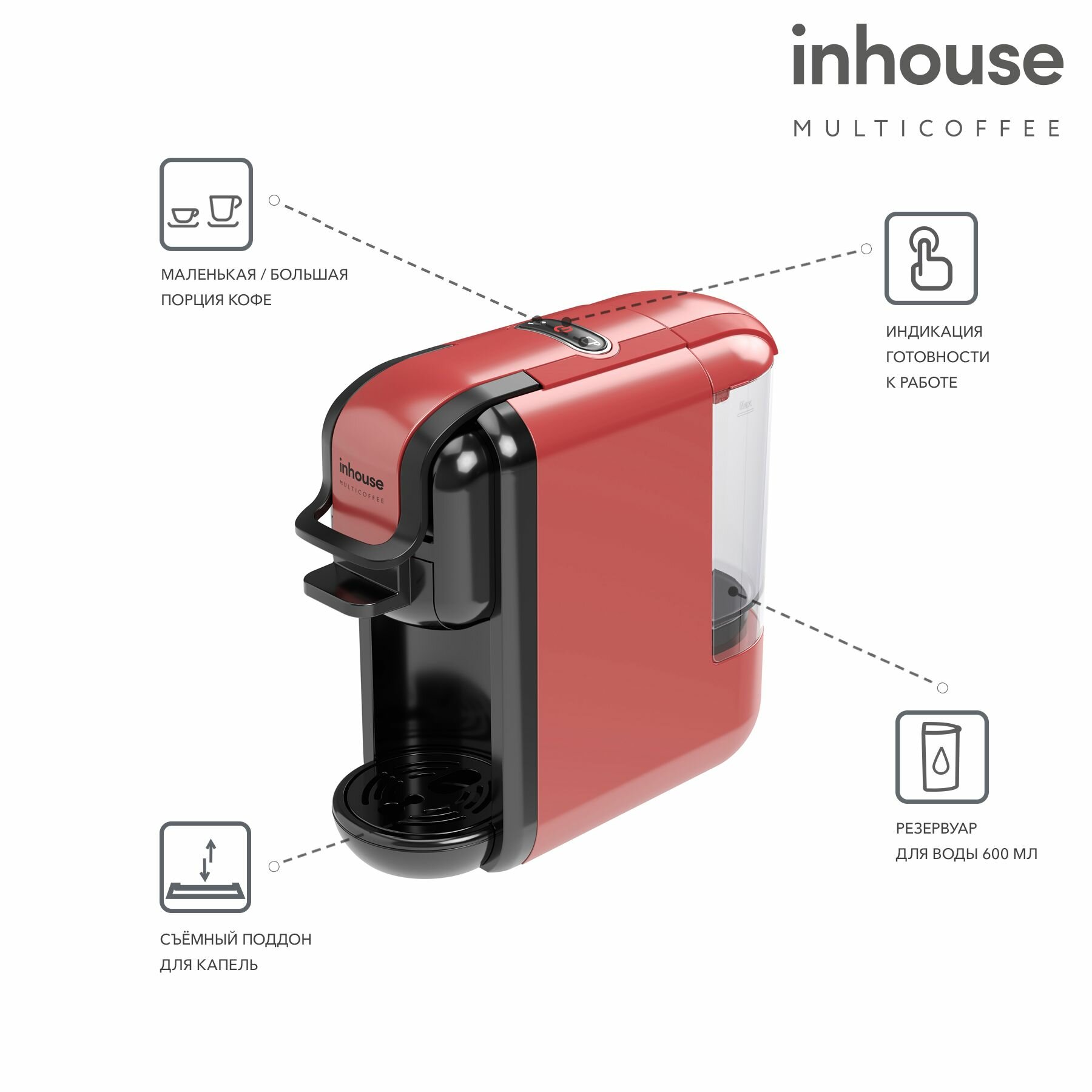 Кофемашина капсульная и рожковая Multicoffee inhouse, 2в1, автоотключение, красная интересное: