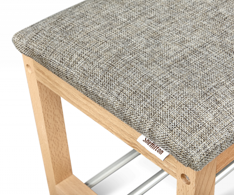 Банкетка-стеллаж для обуви Альберо SHT-B2, Цвет обивки: кедровый, Цвет корпуса: алюминий, дуб беленый