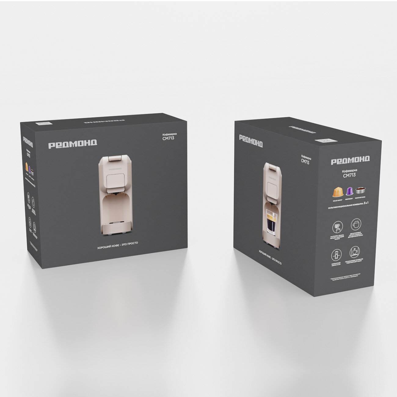 Купить Капсульная кофеварка РЕДМОНД CM713, кофемашина, Nespresso, Docle Gusto, с функцией памяти, бежевый