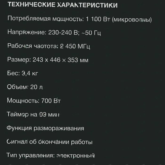 Если хотите быстрый нагрев, берите мощность выше. Огорчила служба доставки, одна ножка была вогнута внутрь, видимо от удара или нагрузки сверху, микроволновка качалась на ровной поверхности. Пришлось разбирать и выгибать обратно, плюс все равно подложил мягкую накладку для стульев. |