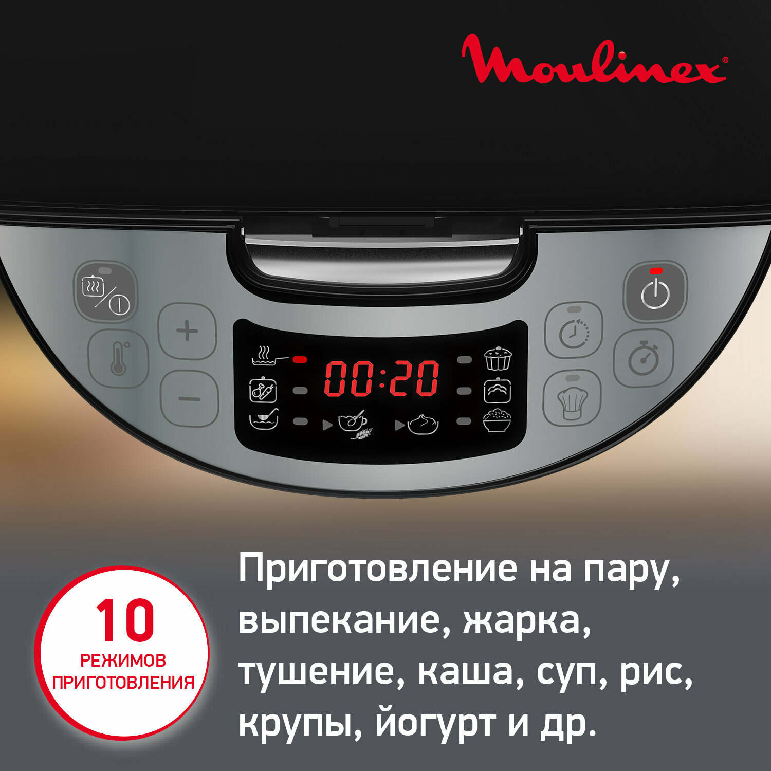 Мультиварка MOULINEX MK611832, 750 Вт, 4 л, 10 программ, таймер, функция Keep Warm, черный /Квант продажи 1 ед./
