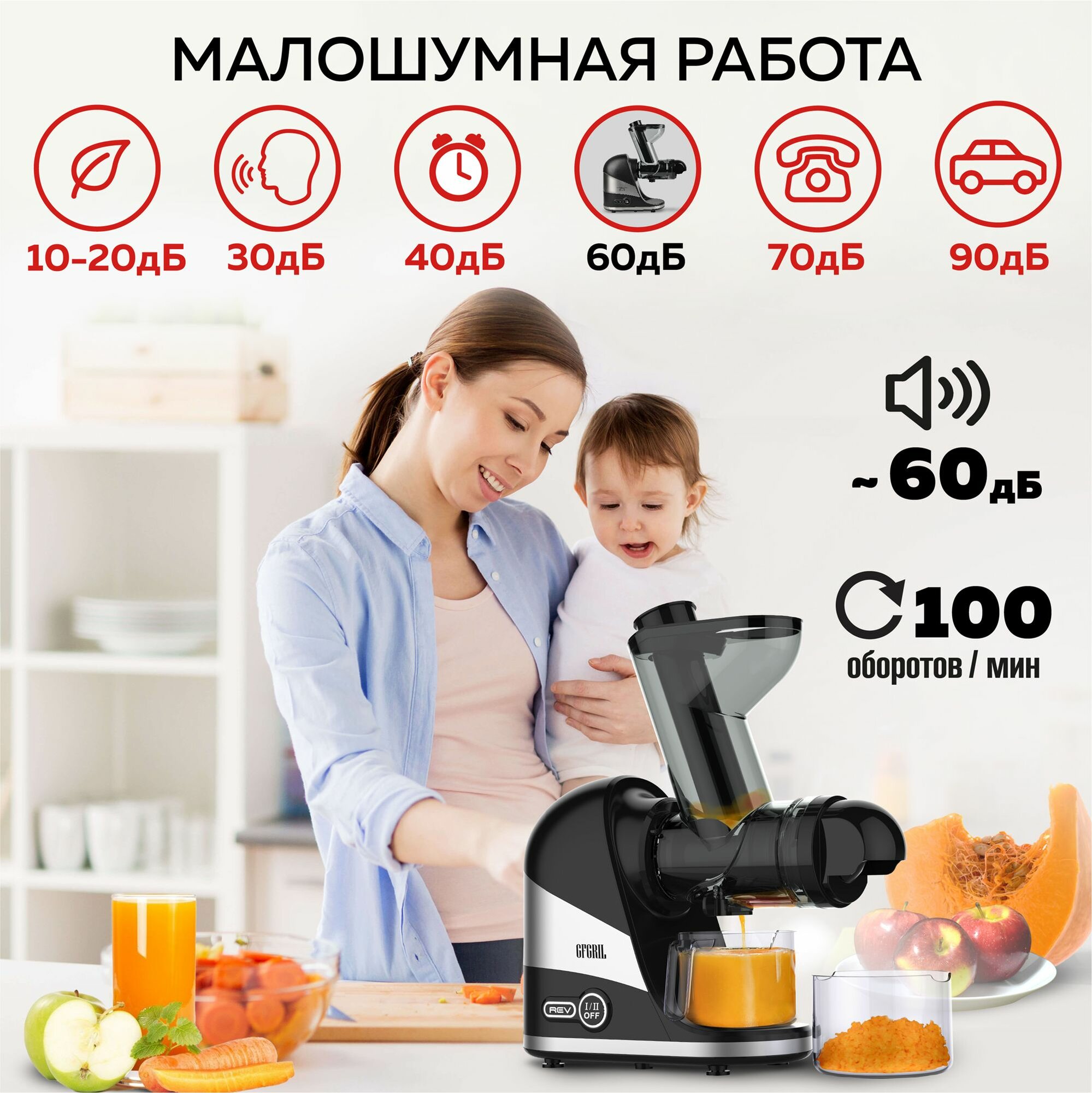 СохранитьGFGRIL Соковыжималка шнековая 2 в 1 GF-J30, широкая загрузочная горловина, приготовление сорбета, система легкой очистки EasyClean интересное: